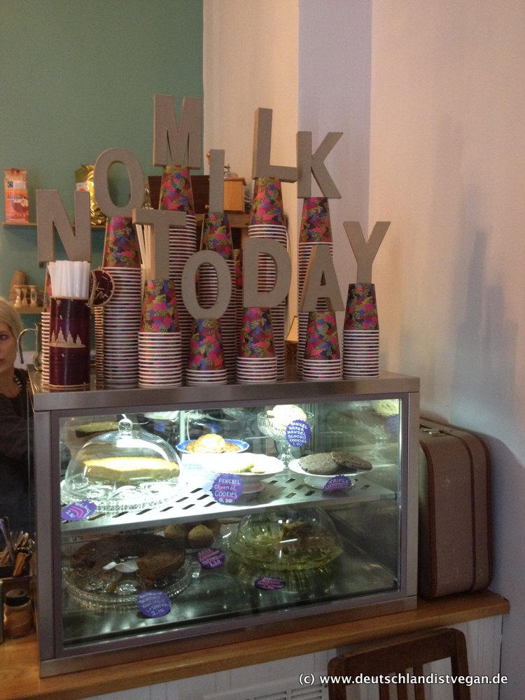 Es gibt keinen Grund, nicht möglichst schnell im „no milk today“ vorbeizuschauen, aber jede Menge dafür. Eine großartige Bereicherung für die vegane Cafészene Berlins, alles richtig gemacht!