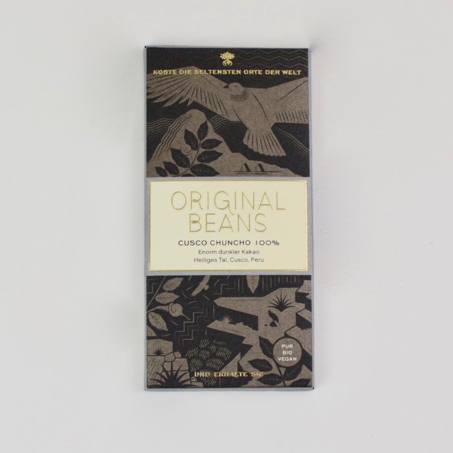 Diese Schokolade ist keine alltägliche Schokolade, dies fällt einem spätestens an der edlen Verpackung auf. Sie bezeugt mit einem Anteil von 100% Kakaobohnen hergestellt Gentechnik- und Bio-zertifiziert in Peru.