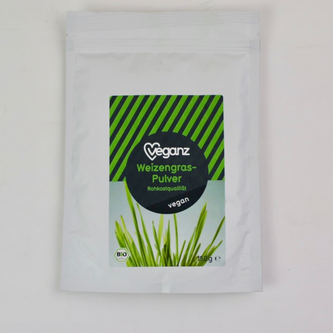Das Bio Weizengras Pulver von Veganz zeichnet sich durch seine Frische, die Regionalität und durch den biologischen Anbau aus. Die jungen Gräser der Weizenpflanze werden noch vor der Ährenbildung geerntet und getrocknet. Danach werden sie zu Pulver vermahlen, daher ist das Pulver perfekt für deinen Rohkost-Smoothie geeignet. Als Rezept Tipp empfiehlt dir Veganz einen leckeren grünen Smoothie mit Spinat, Gurke, Obst, Wasser und einem Löffel Weizengras Pulver.