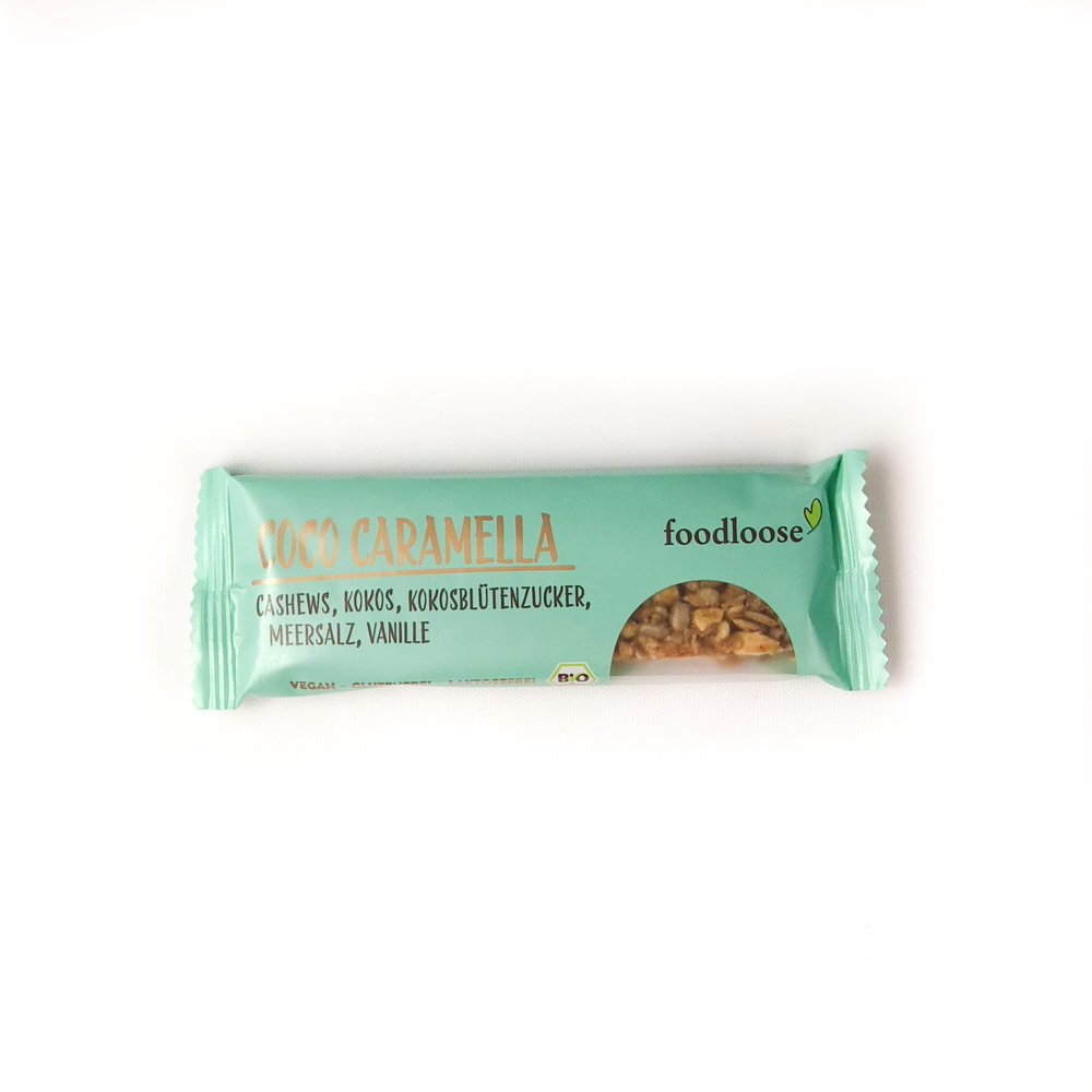Dieser leckere Nussriegel von footloose ist ein muss für jeden Kokosnuss Liebhaber. Der Riegel besteht aus  biologischen Sonnenblumenkernen, Cashewkernen und Kokoschips. Außerdem etwas süße in Form von Agavendicksaft und ein sanfter hauch Vanille.