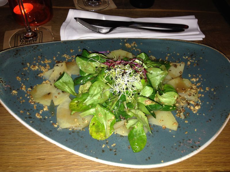 Die Tische sind ziemlich eng aneinander gestellt, das macht es etwas ungemütlich. Aber die Atmosphäre ist extrem cool, das Servicepersonal ist freundlich und schnell und das Essen war wirklich raffiniert und lecker. Zum Abschied bekamen wir zugerufen „Geil, dass Ihr da wart! Danke und so!“. Das steht übrigens auch auf der Rechnung. Ich finde den Laden toll und werde mit Sicherheit nicht das letzte Mal dort gewesen sein.