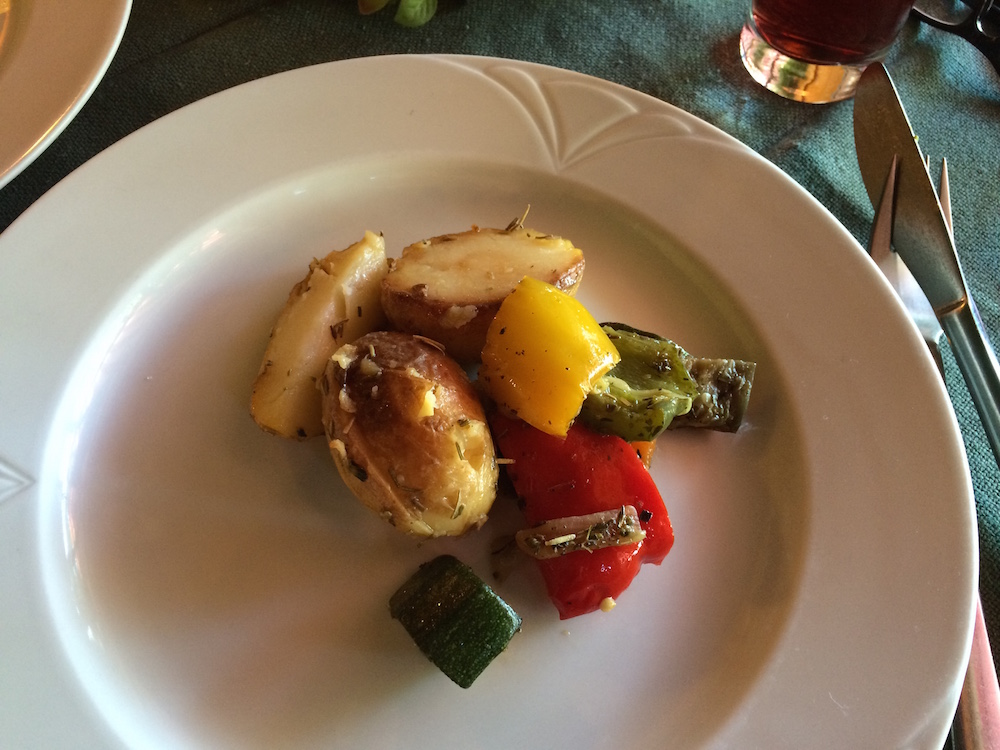 Die Mittagsdesserts, die Teil des Buffets sind, sind normalerweise leider nicht vegan, jedoch bekam ich letztes Mal auf Anfrage einen Sojajoghurt mit Erdbeerkompett. Das klingt zwar fad, war aber erstaunlich cremig und lecker, und ich fand es nett, dass man mir so problemlos und selbstverständlich entgegenkam.