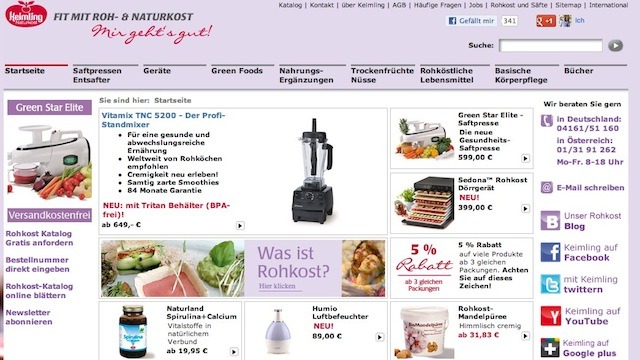 Zur Freude aller Rohköstler (und auch anderer Menschen, die sich bewusst ernähren) gibt es einige Online-Shops, die ein breites Sortiment an Rohkost-Produkten anbieten, und wir wollen in den nächsten Wochen einige vorstellen. Den Anfang macht Keimling, ein Unternehmen das übrigens diesen Blog auch seit Beginn schon unterstützt, und uns dankenswerterweise immer mal wieder Geräte oder Produkte zum Testen zur Verfügung stellt.