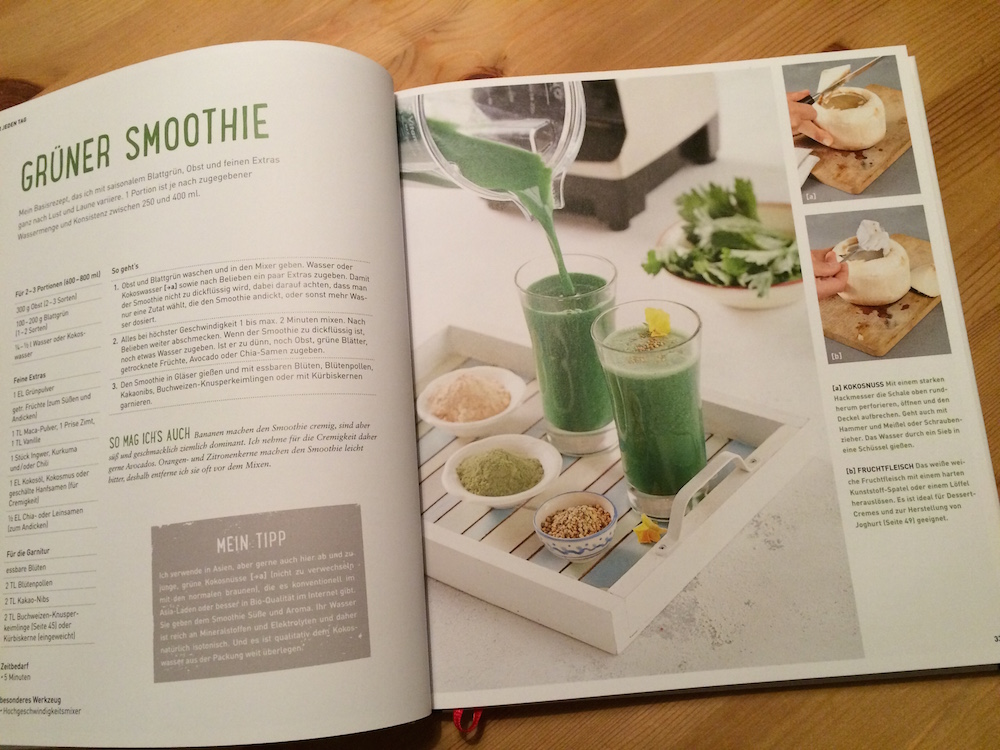 Ich bin ein Mensch, dem die Gestaltung eines Produktes – so auch eines Buches – wirklich wichtig ist. „Go raw be alive“ ist in dieser Hinsicht schon mal ein Volltreffer. Ich habe selten ein ähnlich schön gestaltes Buch gesehen wie dieses. Die Kombination aus Text, Hintergründen und Illustrationen ist wirklich großartig gelungen. Die Foodfotos sind ebenso wie die Porträts von Boris auf gleich hohem Niveau. Die Rezepteseiten sind gut übersichtlich gestaltet, dazu gibt es viele „In the making“-Fotos, wo man einzelne Arbeitsschritte im Rezept zusätzlich visualisiert bekommt. Für mich eine glatte 1.