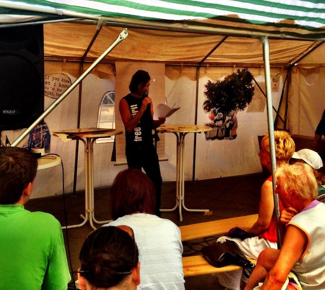 Ich bräuchte noch ein paar Absätze mehr, um alles, was hier geboten wurde, aufzuzählen, daher belasse ich es an dieser Stelle. Viel wichtiger vielleicht war, dass sich hoffentlich eine ganze Menge Menschen überzeugen liessen, dass eine vegane Lebensweise überhaupt nichts mit mangelndem Geschmack oder mangelndem Spass zu tun hat, sondern lecker, bunt und fröhlich ist. Die Atmosphäre war in jedem Fall sehr friedlich, nett und schön, daher bin ich davon überzeugt, dass dies gelungen ist. Toleranz in beide Richtungen war gefragt, und so gab es auf der einen Seite z.B. das kleine Kind, dass mit einer (tierischen) Wurst im Brötchen durch die Vortragsbänke kletterte, auf der anderen Seite sicherlich viele erstaunte Blicke über das vegane Essensangebot von „omnivorer Seite“. Toleranz ist nun mal eine grundlegende Voraussetzung für ein Umdenken der Menschen, und ich denke so ein fröhliches und buntes Sommerfest trägt einen großen Teil dazu bei, die Menschen neugierig zu machen.