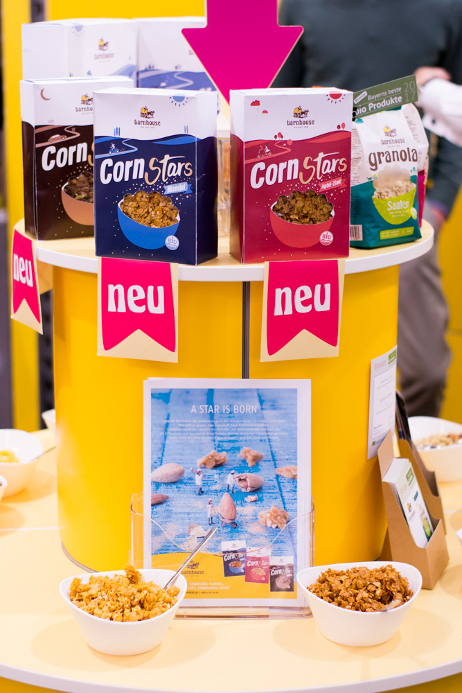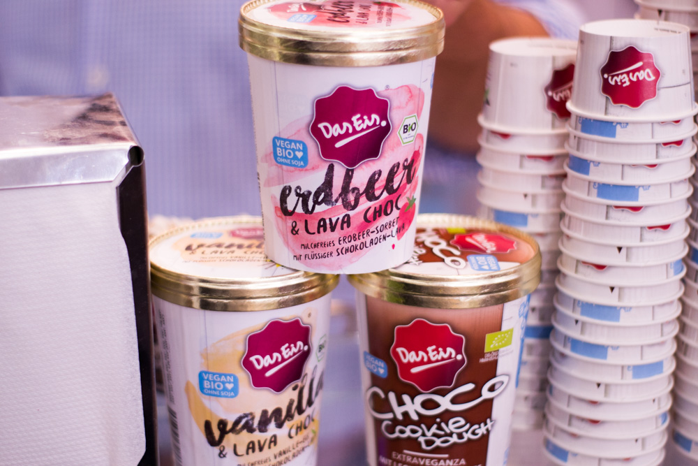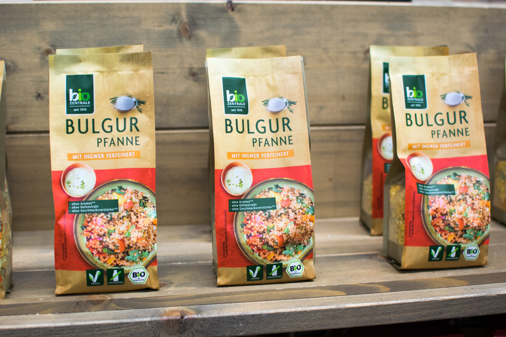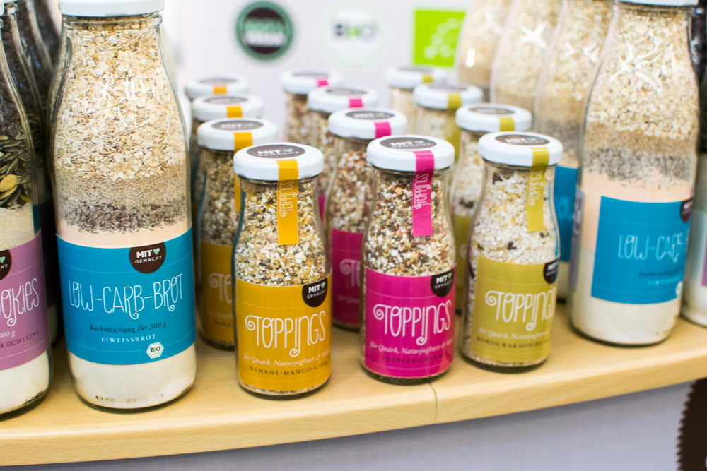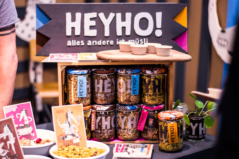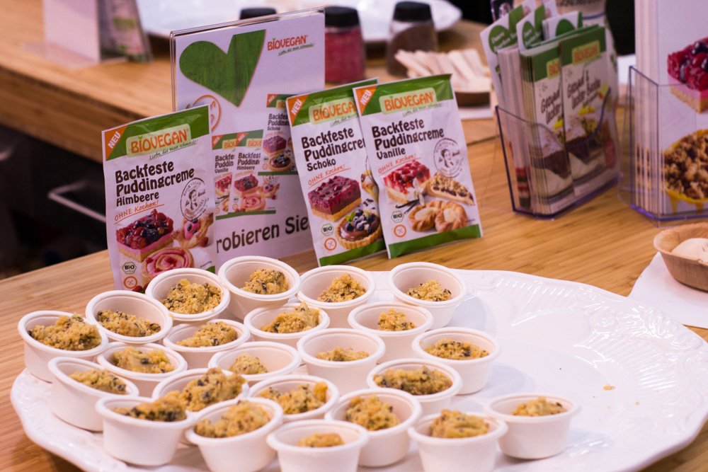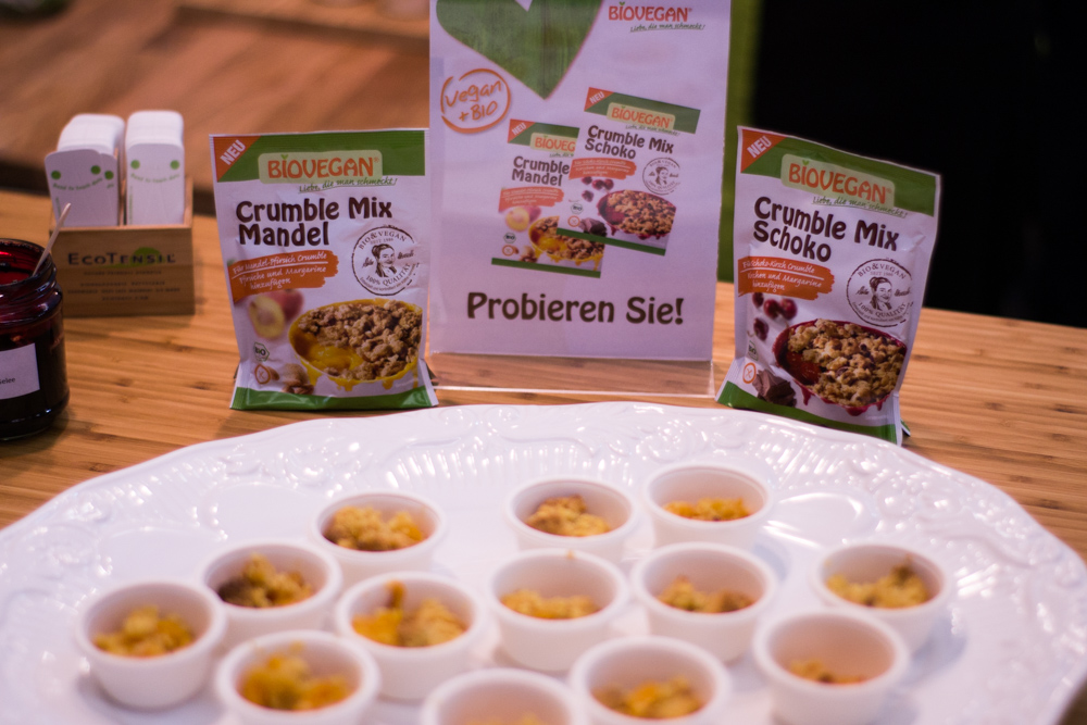 Bei BioVegan fühlt man sich wie Alice im Wunderland. Backzutaten, Saucen, Bindemittel, Geliermittel – beim Familienunternehmen findet jeder Kochfan das passende Produkt. Hier werden tierische Zutaten, Hefezusätze oder Laktose konsequent gemieden! Uns hat die Crumble Mix Schoko Sorte super gefallen. Am Stand auf der Messe haben wir uns satt gegessen und sind einfach begeistert. Kirschen und Margarine dazu und fertig ist der Streuselkuchen – bald dann mehr darüber.
