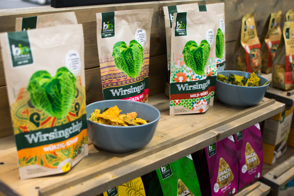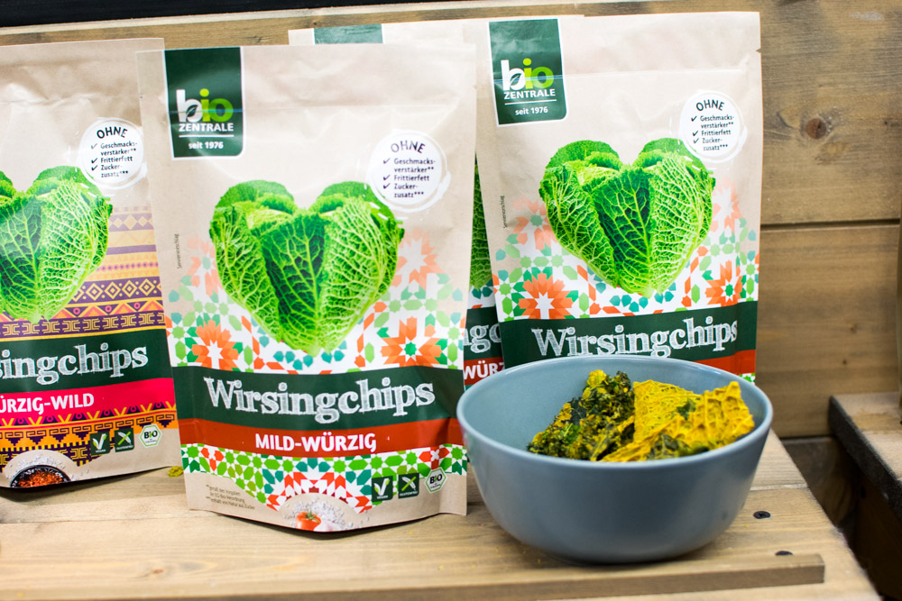 Letztes Jahr haben wir auf dem Stand der Biozentrale die Gemüse – und Süsskartoffelchips probiert. Insbesondere die Rote Bete Chips haben es uns begeistert. Jetzt durften wie die neue Sorte Wirsing probieren – mega grün, knusprig und lecker. Es wird drei Sorten geben – lasst euch überraschen!