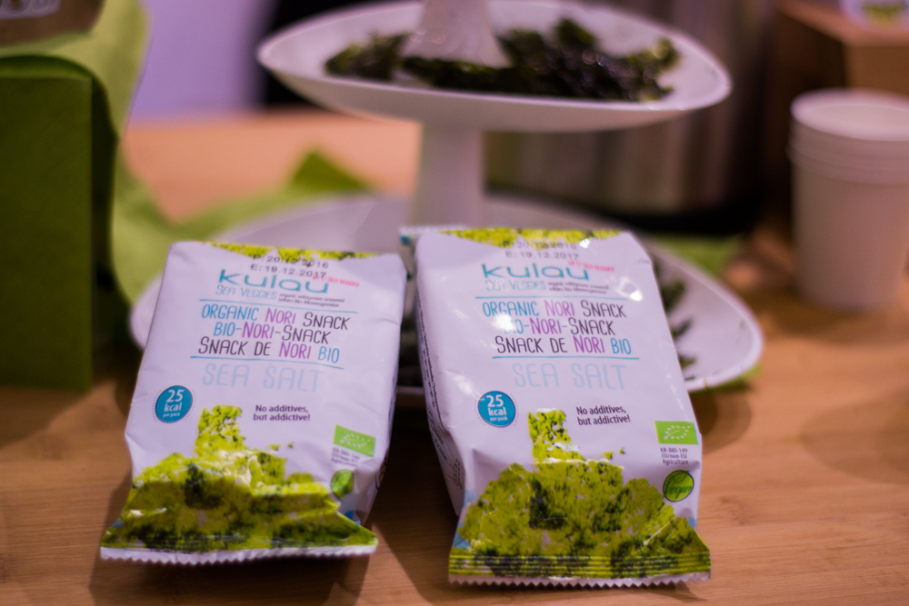 Wir haben auf der veganen Erlebniswelt auch das Team von Evergreen-Food kennengelernt. Neben Öl, Pulver und Kapseln gibt es die Algenperlen aus deutscher Ernte mit fruchtigem Heidelbeergeschmack. Die eignen sich ideal zum Garnieren von Desserts, Salaten und exotischen Gerichten. Das Powerteam hat noch viel vor – wir sind gespannt und bleiben dran.