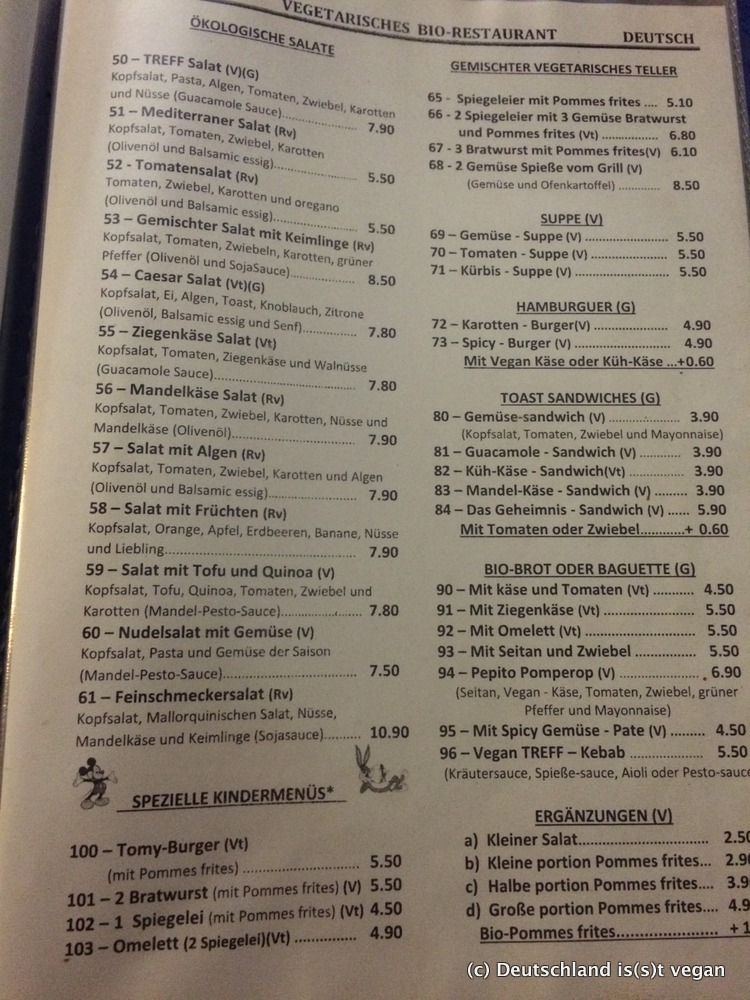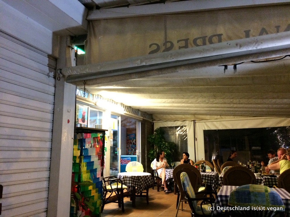Ich habe auch noch andere vegane Locations auf der Insel entdeckt, aber keine hat mich so beeindruckt wie das Treff, und das hat andere Gründe, als ihr jetzt vermutlich vermutet. Keine Frage, das Essen ist sehr gut, aber auch nicht völlig außergewöhnlich. Das Restaurant mutet auch eher wie ein Imbiss an, wie eine der vielen anderen Touristenrestaurants (das aber auch von vielen Einheimischen besucht wird), mit Spielautomaten und Fernseher. Das Ambiente ist der Geschichte des Restaurants geschuldet, denn es war über viele Jahre (ich glaube seit den 70er Jahren) ein typisches Touristenrestaurant mit den allgegenwärtigen Speisen wie Schnitzelteller. Doch dann übernahm irgendwann Tomeu das Familienrestaurant, und machte etwas, mit dem niemand gerechnet hat: Er stellte die Speisekarte schlagartig auf vegetarisch-vegan um, streichte alle Fleisch- und Fischgerichte radikal von der Karte.