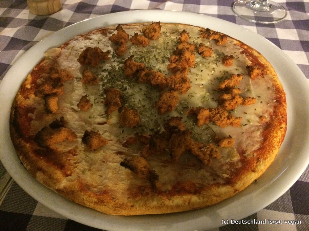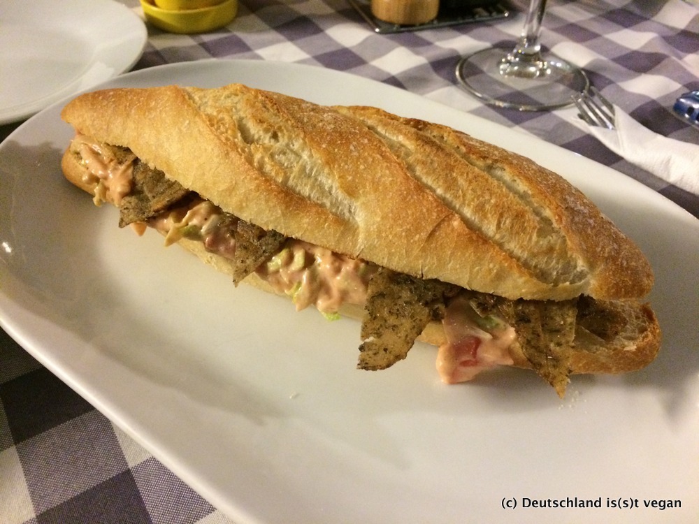 Gegessen habe ich auch, und zwar ganz hervorragend: Pizza mit Seitan und einem selbst kreierten Käse aus Kartoffeln, Kroketten, köstlich-deftige Seitanbaguettes, leckeren Salat und sogar eine vegane Variante der mallorquinischen (Fleisch-)Spezialität Sobrasada. Alles war absolut lecker, vegan, bio und günstig. Dazu gab es hervorragenden Rosé von der Insel und den einen oder anderen Kräuterlikör.