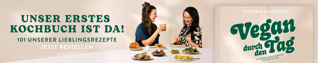 ZUCKER & JAGDWURST – das sind Isa und Julia aus Berlin. Seit 2016 veröffentlichen sie auf ihrem Foodblog Rezepte für veganes Comfort Food. Immer wieder bekommen sie von der Community die Frage: „Wann erscheint endlich ein Kochbuch von euch?“ Gefragt, gesagt, getan! Das Buch ist jetzt frisch aus der Druckerei und das ohne Verlag. Die beiden Powerfrauen haben diesen Schritt ganz mutig selbst in die Hand genommen. Isa und Julia entwickeln außerdem tolle Kochvideos, Podcasts und kommen immer wieder auf wilde Ideen, wie einen veganen Adventskalender, der dieses Jahr ziemlich schnell ausverkauft war.