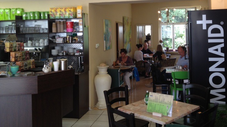 Aufgepasst, wer den Mittagstisch haben möchte, sollte nicht zu spät kommen. Denn sonst ist die Kreidetafel schon ausgewischt und nur noch à la carte Bestellungen möglich. Neben dem Mittagstisch stehen zum Glück Burger, Baguettes, Salat und sogar Pizza (natürlich vegan) auf der Speisekarte. Je nach Geschmack entweder vegan, oder auch mit Käse überbacken. Wen das nicht satt macht, der kann zwischen einer Vielzahl süßer Verlockungen auswählen: Zum Beispiel vegane Brownies, Soja-Milchreis mit und ohne Früchte oder hausgemachte Flapjacks warten ebenso in der Vitrine wie ein sündhaft leckeres, wenn auch leider nicht veganes Tiramisu.