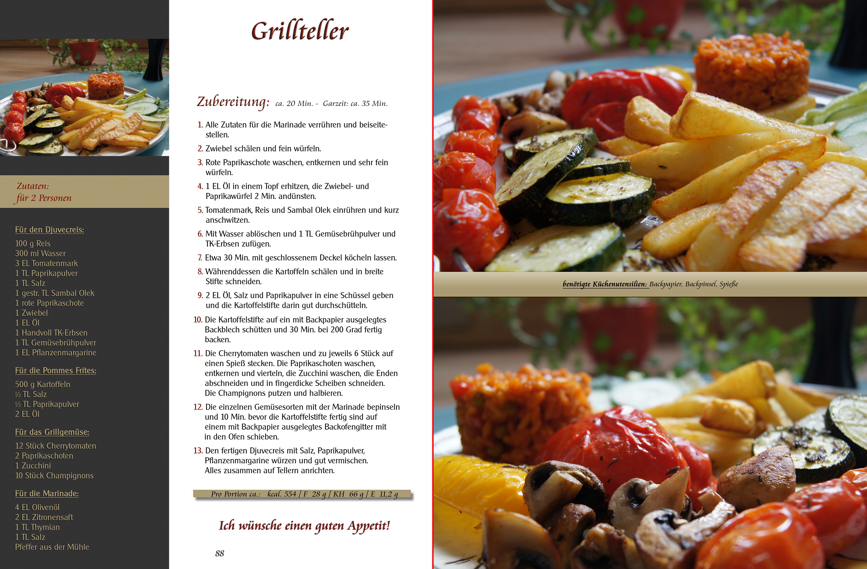 Besonders für Einsteiger ist das Buch sehr empfehlenswert und die Rezepte sind sehr leicht und gut gemacht. Wir haben zwei einfache Rezepte für Euch ausgesucht. Es gibt einen Grillteller und zum Nachtisch einen Amaretto-Kirschkuchen. Und wer auf den Geschmack gekommen ist, der kann an unsere Verlosung bis 1.2.2016 zum teilnehmen. Likt den Artikel und nennt uns den Grund, warum ihr Eure Ernährung auf vegan umgestellt habt und gewinnt eines der 5 Exemplare „Vegan – ganz einfach“ von Daniela Noia.* Alle anderen können das Buch für 18,50 € überall im Handel erhalten.