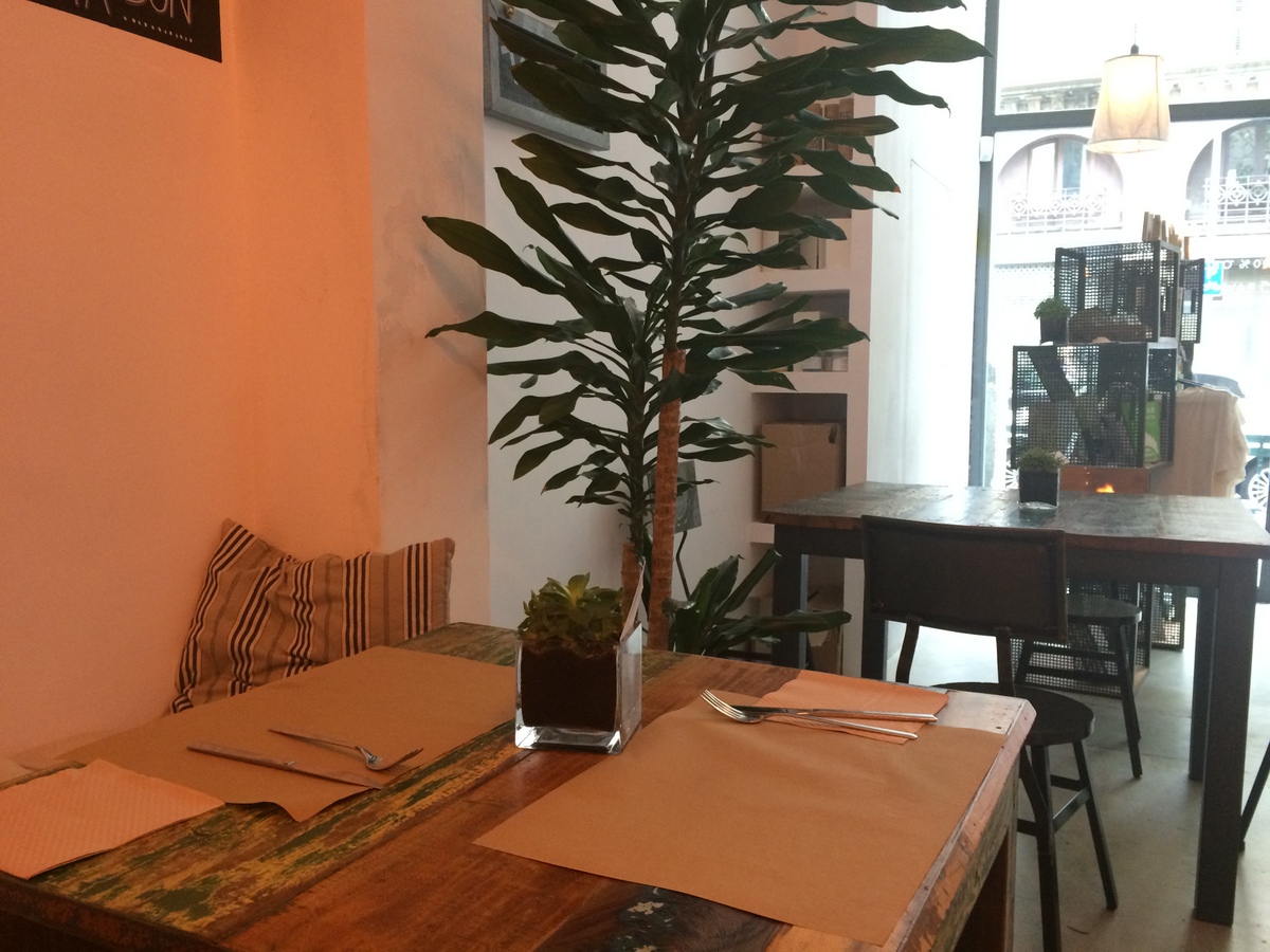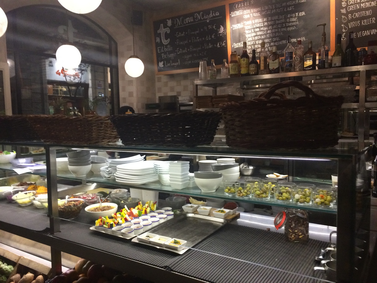 Hier zitiere ich aus meinem letzten Artikel, denn an meiner Meinung hat sich nichts geändert: „Das Rasoterra ist ein vegetarisch-veganes Restaurant, das viele klar deklarierte Optionen anbietet. Das Restaurantambiente ist wunderschön, stylish und doch gemütlich. Für Barcelona typisch, gibt es eine tolle Auswahl an Tapas, also Portionen, die nicht für den hohlen Zahn sind, aber auch nicht für einen vollen Magen sorgen, so 2-3 davon schafft man. Dazu gibt es einige wechselnde Hauptgerichte, eine tolle Weinauswahl, und die Zutaten sind größtenteils bio, vieles aus dem Restaurant-eigenen Anbau. Außerdem sind die Betreiber Slow Food-Fans. Wir waren zwei mal dort essen und waren komplett begeistert, alles war wunderschön angerichtet und schmeckte grandios. Probiert bitte die Oliventrüffel zum Nachtisch. Dazu einen katalonischen Rosé-Wein. Wer nun Angst hat, sehr tief in die Tasche greifen zu müssen, den kann ich beruhigen: Wir haben zu zweit inkl. 4 Gläsern Wein so 45 Euro ausgegeben, und das war es mehr als wert. Absolute Empfehlung, don’t miss! Hier geht es zur Happy Cow-Bewertung mit Öffnungszeiten und Adresse etc.“