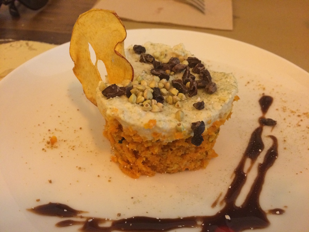 Recht neu am Start ist das „Rizoma“, nicht weit von der Sagrada Familia entfernt. 100% vegan und großartiges Essen, gekocht von einem Star in der spanischen Veganszene, wie man uns gesagt hat. Ein kleiner Laden, der sich kurz nach der Öffnung am Abend (mittags kann man hier aber auch essen) schnell füllt, von daher am besten früh hin. Das Ambiente ist nicht unbedingt sonderlich schön, aber das Essen entschädigt dafür. Sehr schön präsentiertes, wahnsinnig leckeres veganes Essen.