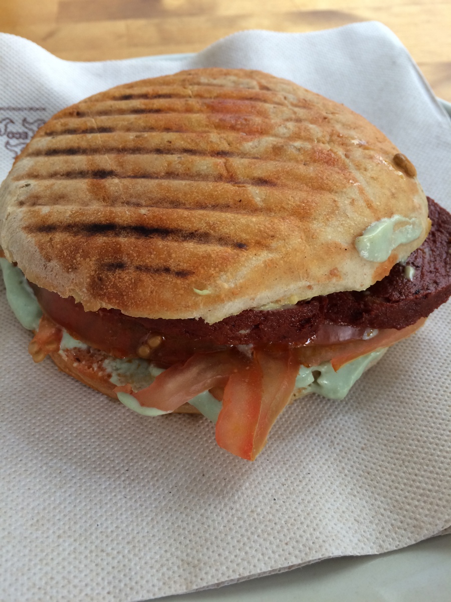 Jetzt doch noch endlich was für Fast Food Fans. Gopal am herrlichen Platz George Orwell (wo du auch unbedingt mal zum Oviso rübergehen solltest um ein Getränk oder zwei zu nehmen) ist ein sehr kleiner Laden mit großem Burgerangebot, dazu sündig-leckere Schokdonuts (für schlappe 1,50 Euro) und noch mehr Fast Food. Wer mag, kann auch Burgerpatties in den verschiedensten Varianten, Wurst oder Käse mitnehmen – alles vegan natürlich! Ich liebe das Chorizo Bocadillo! Supergünstige Preise, supernette Betreiber und leider geil.