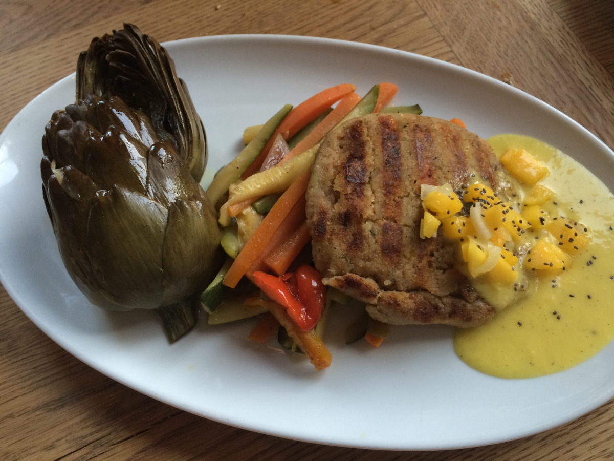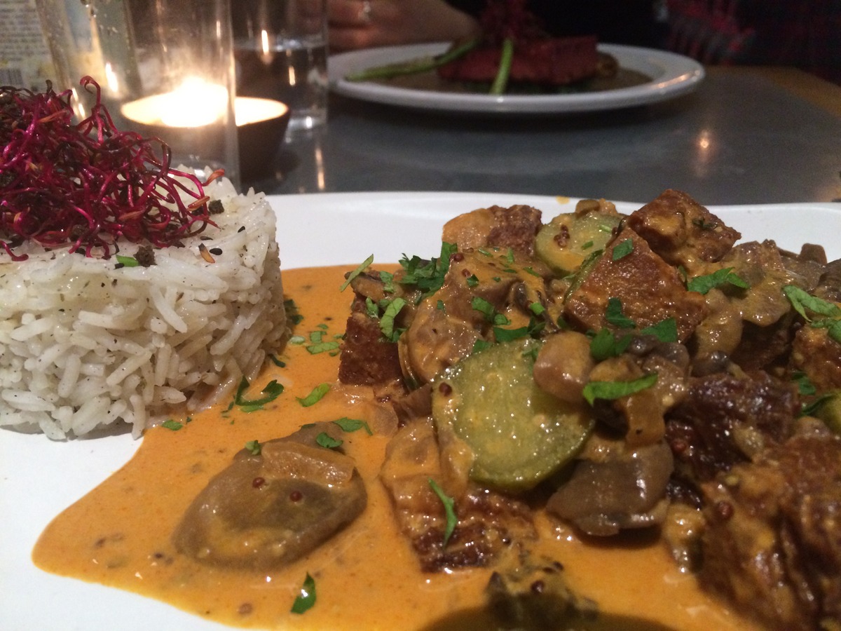 Die Betreiber des Flax and Kale haben ein weiteres Restaurant um die Ecke, das „Teresa Carles“, und das erfreut sich ähnlich großer Beliebtheit wie der Schwesternladen. Hier geht es allerdings rein vegetarisch zu, und die Preise sind ein klein wenig geringer. Generell möchte ich aber hinzufügen, dass sowohl im Flax and Kale als auch im Teresa Carles absolut nichts an den Preisen auszusetzen ist, und wer mittags zu Teresa Carles geht, kann sogar für 10 Euro ein Menü bekommen, eine Flasche (leckerer) Hauswein kostet gerade mal 11 Euro. Ein absolut großartiger Laden in jeder Hinsicht mit großem veganen Angebot, stylishem Ambiente, kreativem köstlichem Essen und superprofessionell. Allerdings lohnt eine Reservierung, denn ich bin nicht der einzige, der das mitbekommen hat.