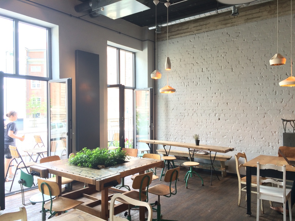 Wer in Kiel im hohen Norden unserer Republik weilt, hat keine riesige Auswahl an veganen Locations, aber es gibt ein paar Läden, die zumindest ein veganes Angebot haben. Dazu gehört das wirklich wunderschöne Mmhio, das sich selbst als vegetarische Bio-Kantine bezeichnet. 100% der eingesetzten Speisen sind bio, womit das Mmhio ein in Kiel einzigartiges Konzept hat. Angeboten wird ein wechselnder Mittagstisch mit je 3 Gerichten, fast immer sind 1 oder 2 vegan. Ansonsten gibt es viele Snacks, von denen so einige vegan sind. Netterweise sind die veganen Speisen auch klar deklariert, und das Angebot ist wirklich nicht schlecht.