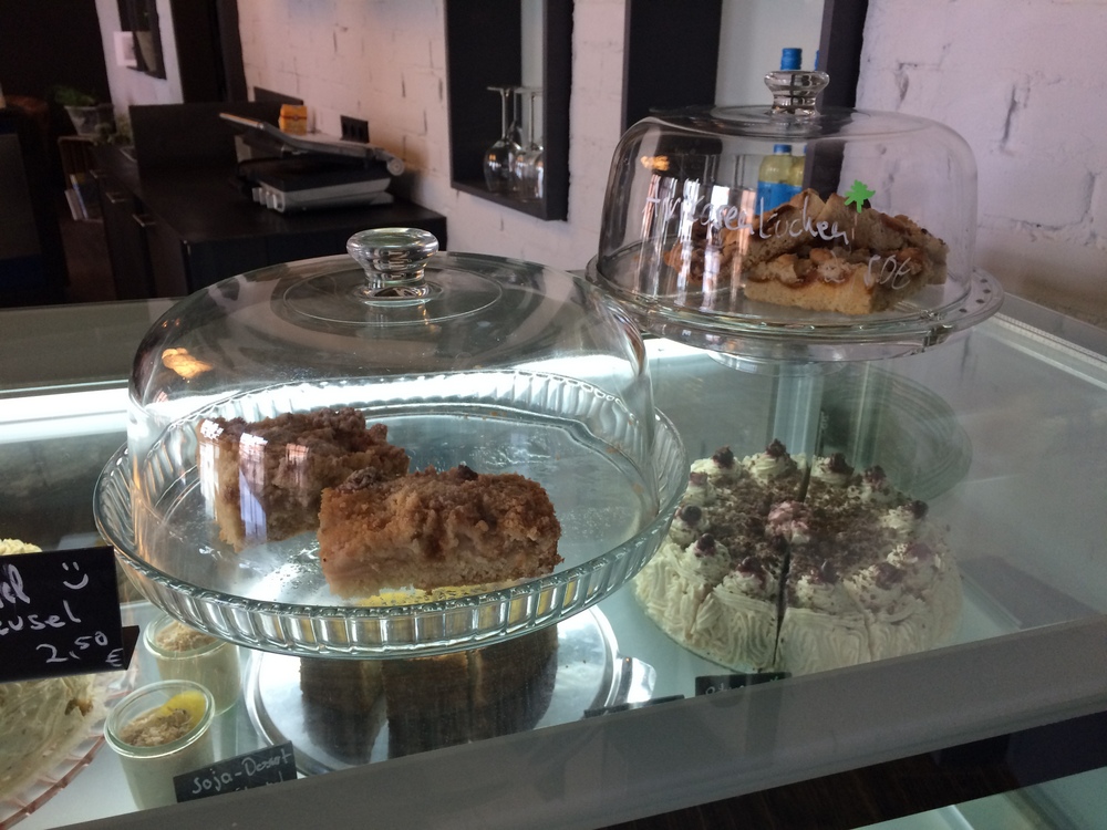 Im wunderschönen Ambiente des Mmhio kann man aber auch einfach Kaffee und Kuchen genießen, und auch was das angeht, kommen Veganer absolut auf ihre Kosten. Die Preise sind wirklich günstig, vor allem angesichts der Bio-Qualität. Eine Terrasse gibt es auch noch, außerdem ein schönes Getränkeangebot. Ein wirklich netter Laden! Auf der Internetseite gibt es übrigens auch den aktuellen Wochenplan für den Mittagstisch.