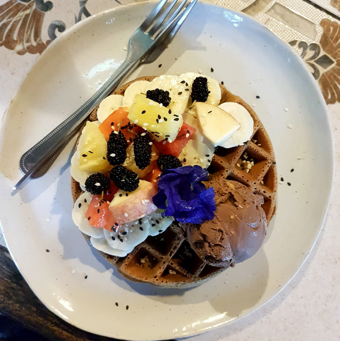 Gefrühstückt haben wir meist im Fat Cat, einem Café im lauschigen Baumhaus-Stil, dass von Kürbisranken umwuchert wird und in dessen Garten viele Zutaten von den Besitzern selbst anbaut werden. Ob nun die Rice Banana Bowl, der Avocado Salad on Toast oder das Müsli mit Obstsalat – hier ist es nicht nur lecker, sondern auch gesund. Auch im Earth Tone, nur ein paar Meter weiter, kann man sehr gut frühstücken und lunchen. Mein Tipp: Die Buchweizenwaffeln mit Obstsalat und einer Kugel Schoko-Banane-Erdnuss-Eis. Der Hammer! Wer gerne Frucht-Bowls isst, sollte unbedingt bei Bom Bowl vorbei. Die haben eine kreative und große Auswahl der des beliebten Healthy Food – von Acai- bis Erdnuss-Schoko-Bowl. Und wenn du Lust auf herzhafte asiatische Küche hast: im rein veganen Chew Xing gibt es chinesische Kost mit wirklich gutem Fake Meat und bei Charlie & Lek und Nana’s, beide nicht rein vegetarisch/vegan aber mit top Auswahl, gibt es verdammt gutes und preiswertes thailändisches Essen. Kleiner Tipp: probier unbedingt einmal das traditionelle Gericht „Fried Morning Glory“, gebratener Wasserspinat mit Knoblauch in kräftiger Sauce, klingt simpel – lohnt sich aber alle Male!