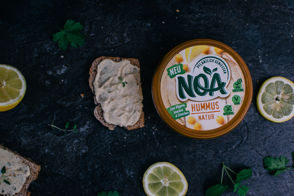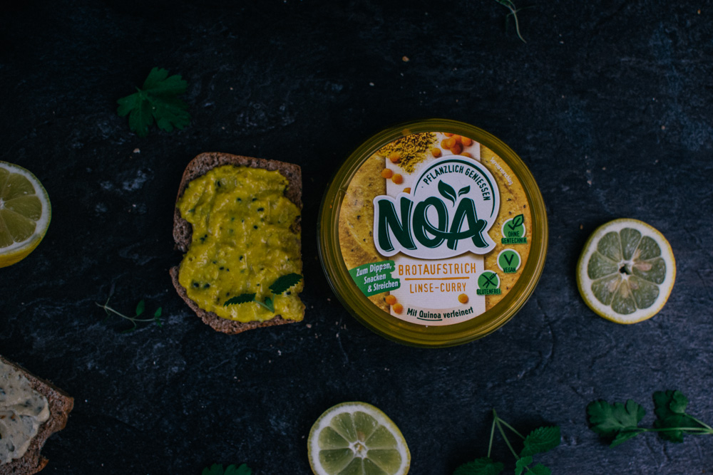 Das ist das Credo von Noa – und dementsprechend möchte das Unternehmen nicht einfach tierische Produkte „nachbauen“, sondern ganz eigenständige, pflanzliche Produkte anbieten. Aktuell gibt es vier Brotaufstriche – hergestellt aus Getreide, Hülsenfrüchten, Gemüsen, Gewürzen und Kräutern. Alles Produkte sind natürlich ohne Gentechnik, vegan und glutenfrei – und außerdem frei von Aromen, Konservierungsmitteln und anderen Zusatzstoffen. Die Basis aller Aufstriche sind immer Hülsenfrüchte, unter anderem für die Extraportion Proteine; Hülsenfrüchte enthalten darüber hinaus zahlreiche weitere wertvolle Nährstoffe.