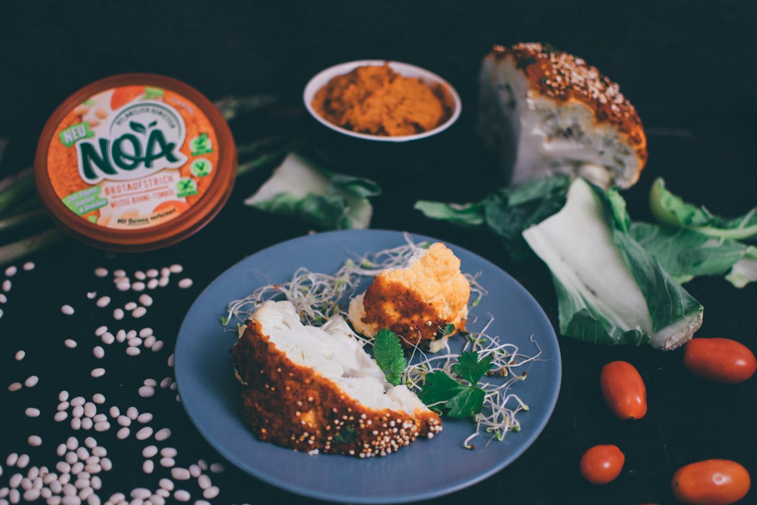 Habt ihr Lust ein eigenes Rezept mit dem neuen Aufstrich zu kreieren – egal ob ihr das Startpaket gewinnt oder nicht? Wir haben zum Beispiel eines mit gebackenem Blumenkohl gemacht (das Video gibt es weiter unten). Eure Rezepte könnt ihr bis zum 15.7.2017 bei uns einreichen unter hallo@deutschlandistvegan.de, oder via Post auf Facebook, oder via Post auf Instagram – mit dem Hashtag #noapflanzlich und #deutschlandistvegan. Unter allen Teilnehmern suchen wir zwei Rezepte aus, die dann auf unserem Blog Deutschlandistvegan.de veröffentlicht werden. Und zwei Gewinner bekommen außerdem noch eine richtig schöne NOA Überraschung.;-)
