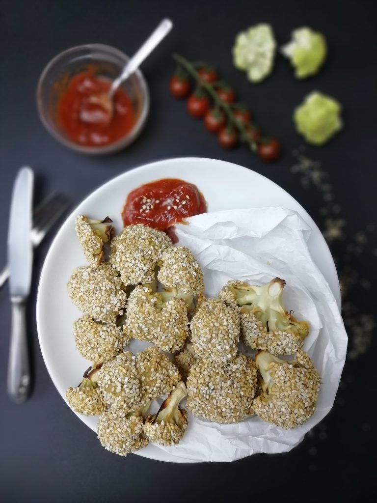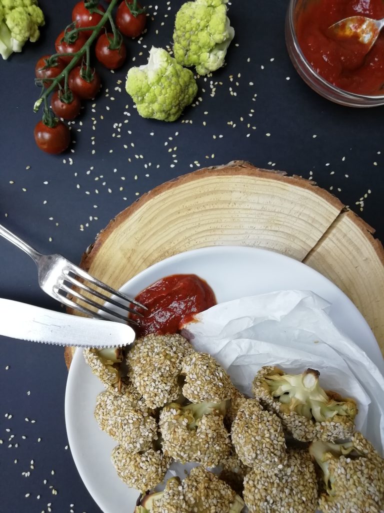 Vegane Blumenkohlwings mit homemade Ketchup © Kimberley Mielke