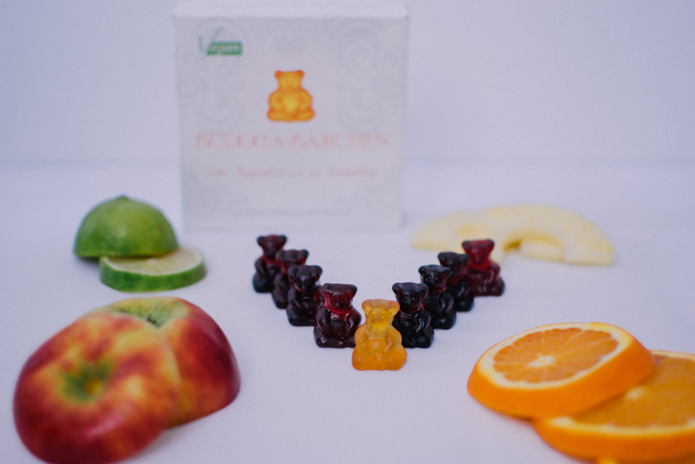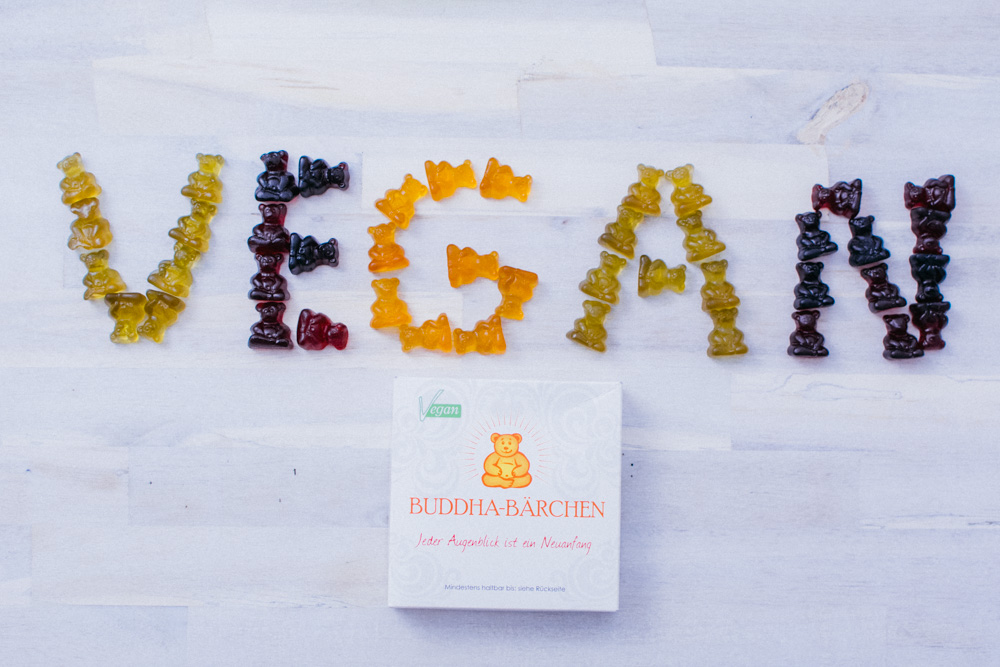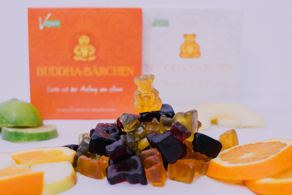 Auf der BioFach haben wir die Schoko-Schamanen von mindsweets enteckt und waren sehr begeistert als wir dann erfuhren, dass das Berliner Kleinunternehmen auch vegane Buddha-Bärchen und Glücks-Bärchen aus Fruchtsaft herstellt. Die Bärchen sind nicht nur ohne Gelatine, nein, zum Süßen wird Rohrzucker und Maissirup verwendet, Pektine zum Gelieren und Fruchtsaftkonzentrate wie Orange oder Himmbeere für Farbe und Geschmack. Alles in Bio-Qualität. Aber in den Bärchen steckt noch mehr. Das Unternehmen arbeitet nach buddhistischer Wirtschaftsethik – sozial, ökologisch, achtsam. So kommen die Zutaten zu 95,9% aus kontrolliert biologischem Anbau und der Verpackungskarton besteht größtenteils aus FSCzertifiziertem Karton aus nachhaltiger Forstwirtschaft. Die Buddha-Bärchen werden in einer Behindertenwerkstatt in Berlin verpackt. Auf allen Verpackungen sind Weisheitssprüche, die uns inspirieren, nachdenklich und happy machen sollen.