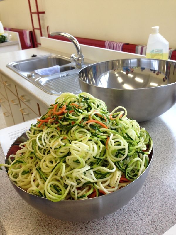 In 2014 ziehen nun endlich auch andere Volkshochschulen in der Umgebung nach. Jetzt im Februar habe ich bei einem der Kurse in Bad Dürkheim mitgemacht, weil ich denke, ich kann handwerklich bestimmt noch einiges dazulernen und außerdem kocht jeder anders. Durch einen solchen Kurs bekommt man oft neue Anregungen und Ideen. Und es war wirklich ein Riesenspaß. Das Thema war „Einstieg in die vegane Küche“, dafür angesetzt waren 5 Stunden – und die haben wir auch echt gebraucht! Es gab eine kurze theoretische Einführung bei einem leckeren grünen Smoothie, eine Vorstellungsrunde, bei der man erfahren hat, wer die Leute sind und warum sie sich für den Kurs angemeldet haben. Und das waren wirklich ganz unterschiedliche Menschen, die aus den unterschiedlichsten Gründen einmal ausprobieren wollten wie man vegan kocht.