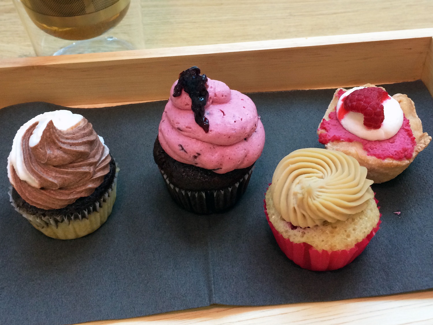 Zu meinen Favoriten gehören eindeutig Kokos (mit selbst gemachtem Kokos-Schoko-Konfekt in der Mitte) und ein mit Kokos und Himbeeren gefülltes Blätterteig-Törtchen, das ganz ohne Zucker auskommt.