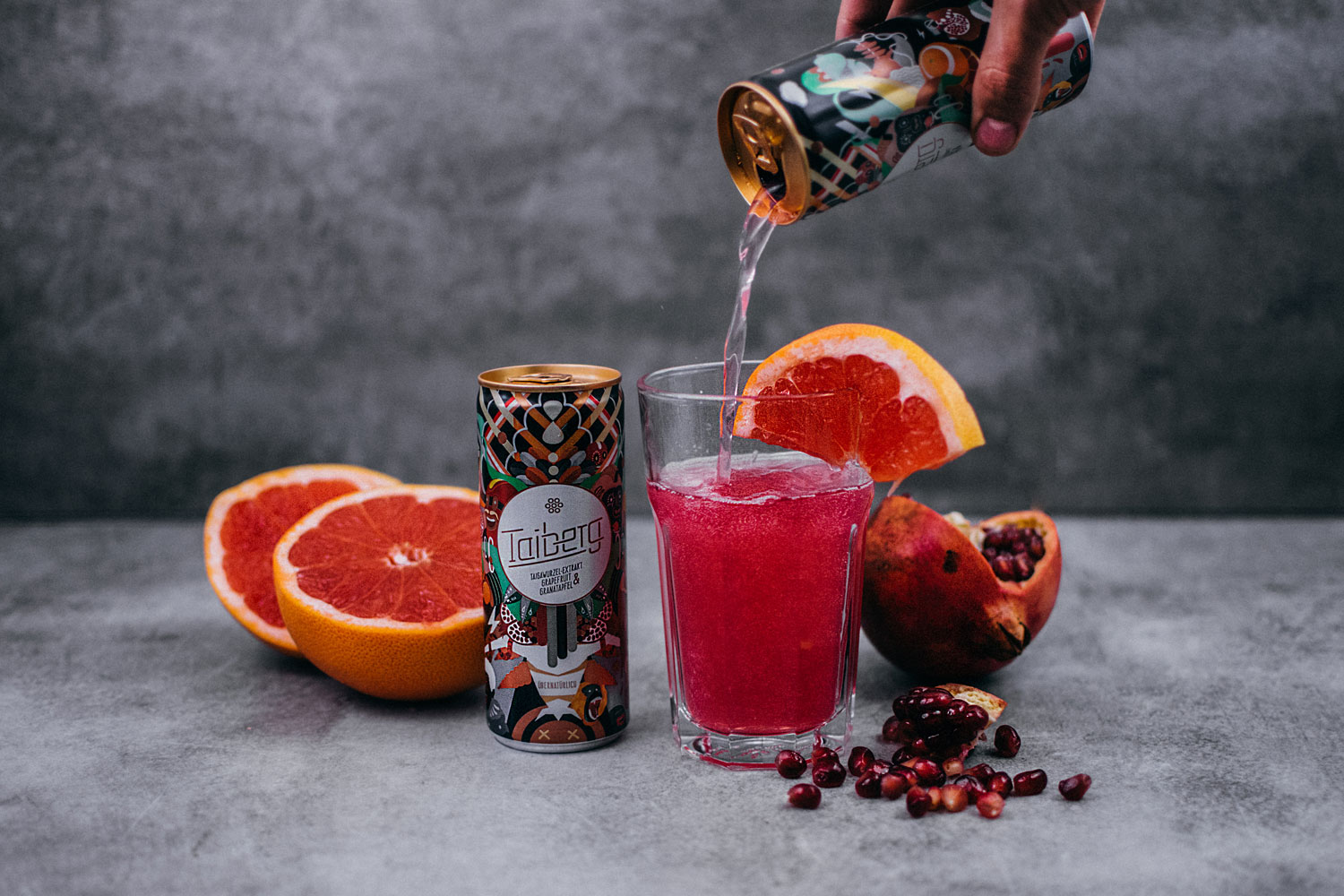 Ehrlich gesagt finden wir zunächst einmal das Design der Taiberg-Dose echt gelungen. Aber zurück zum Erfrischungs-Score. Mit einer übernatürlich exotischen Zusammenstellung aus Taiga-Wurzel (musste ich googlen), Granatapfel und Grapefruit ist diese Limo ein ziemlich freakiges geniales Getränk. Wow! Wen‘s interessiert: Taigawurzel oder sibirischer Ginseng ist eine immunmodulierendes Arzneipflanze und hilft gegen Müdigkeit und Schmerzen. Taiberg hat uns auf jedenfall auf köstliche Weise den Durst gelöscht. Aaahh!