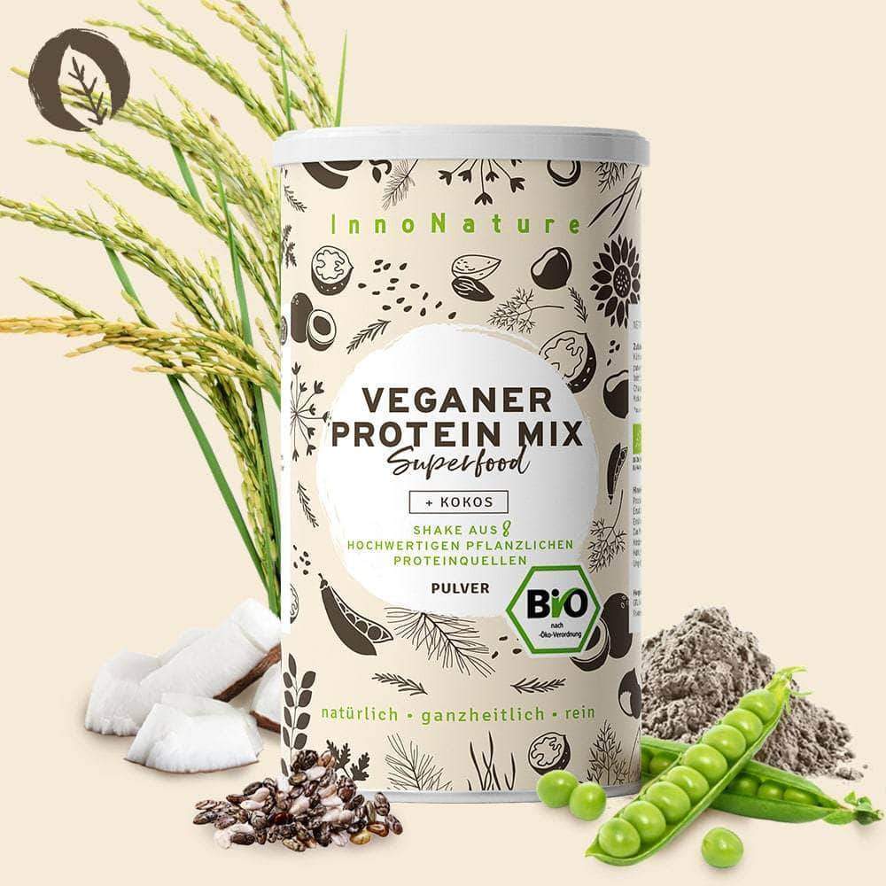Natürlich sind auch Proteine wichtig für den Körper, vor allem, wenn man gezielt Muskeln aufbauen möchte. In der veganen Ernährung findet man zahlreiche Proteinquellen. Man kann aber auch durch einen reichhaltigen und natürlichen Shake die Proteinaufnahme unterstützen. Der vegane Proteinshake von InnoNature enthält Erbsen, Reis, Kürbis, Mandeln und Chiasamen und ist somit eine richtige Energiebombe! Er hat eine hohe biologische Wertigkeit, da 8 pflanzliche Proteinquellen kombiniert werden. Die natürliche Süße erhält er durch Süßholz. Die wichtigen Proteine, Mineralstoffe, Aminosäuren und Antioxidantien sind super für Zwischendurch oder nach dem Sport. 500g Proteinpulver kosten 29,90€.