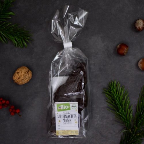 Der Schokoweihnachtsmann von DM in der Sorte „Edelbitter“ ist selbstverständlich aus veganer Schokolade und kommt sogar noch in Bio-Qualität in den Handel. Für ungefähr zwei Euro ist das nicht selbstverständlich, wenn man zum Vergleich an die teuren Edelbitter-Weihnachtsmänner von Lindt und Co. denkt.