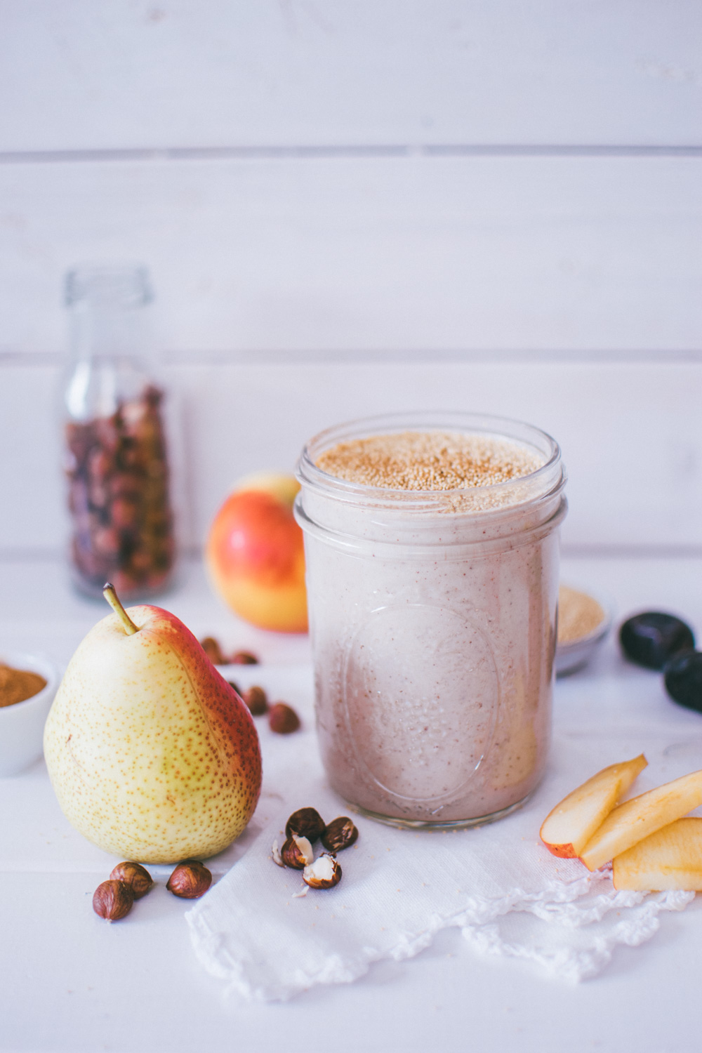 2. Jetzt einfach die Apfel- und Birnenstücke mit allen weiteren Zutaten in den Mixer geben.