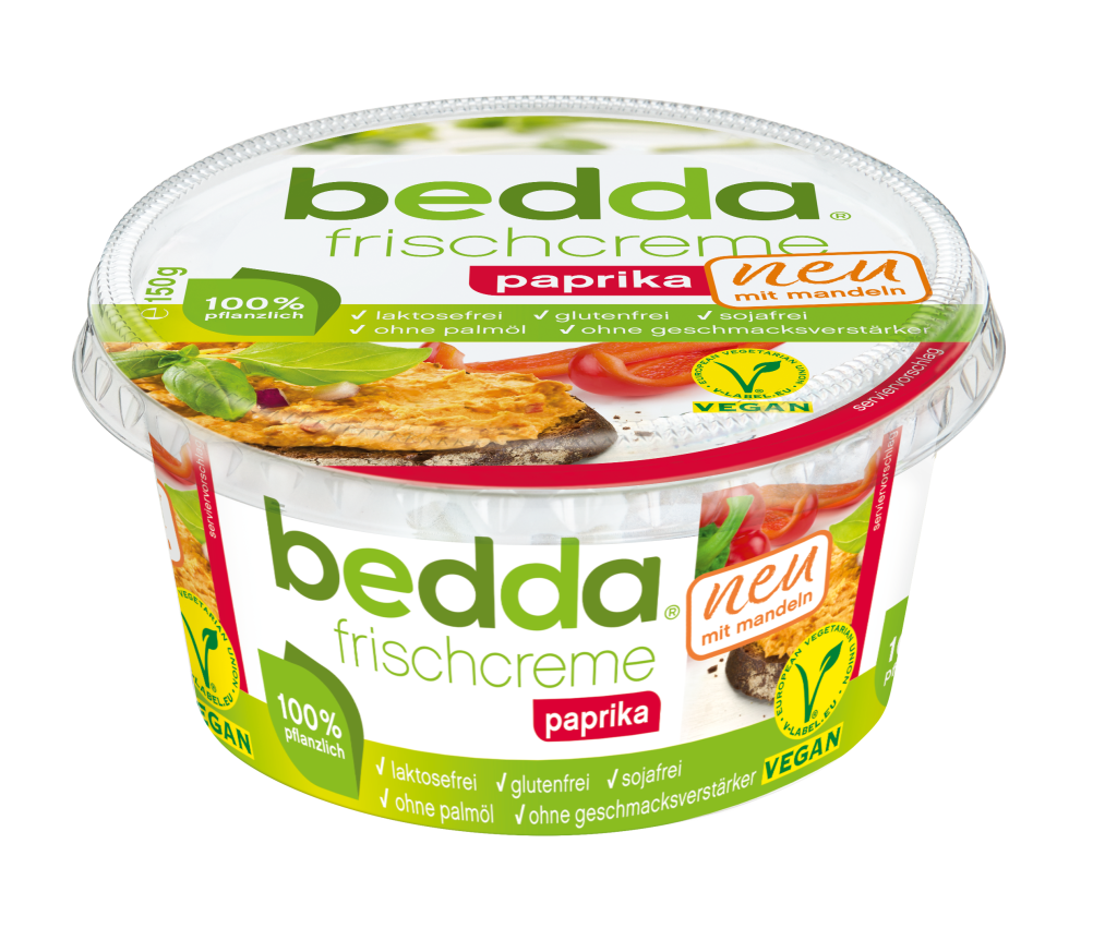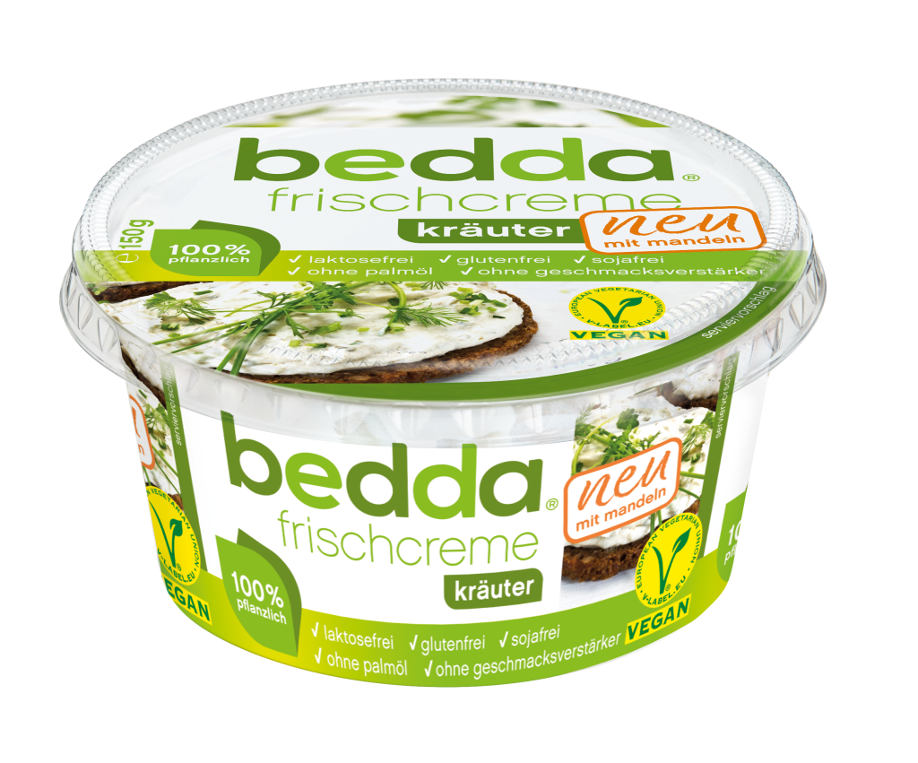 Auch einen Frischkäseersatz gibt es von bedda. Die leckeren Sorten natur, kräuter und paprika überzeugen auch Nicht-Veganer und eignen sich perfekt als Brotaufstrich oder zum Dippen. Ein 150g Becher kostet 2,49€.