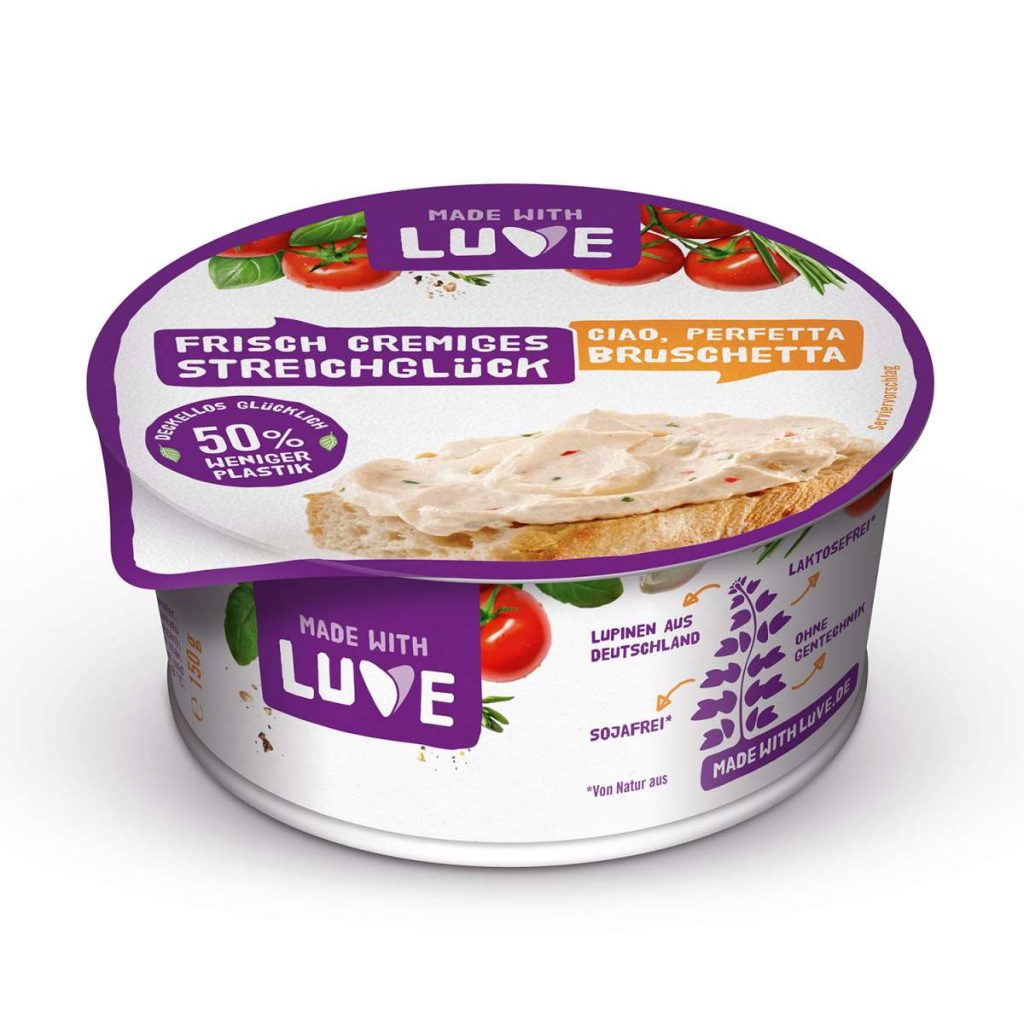 Den Aufstrich von Made with Luve gibt es in den Sorten: Natur, Querbeet Kräuter und Bruschetta. Die verwendeten Lupinen stammen aus Deutschland und stellen eine tolle Alternative zu Soja da. Ob als Dip, Aufstrich oder zum Kochen und Backen – Die Optionen sind vielseitig. 150g kosten 2,89€.