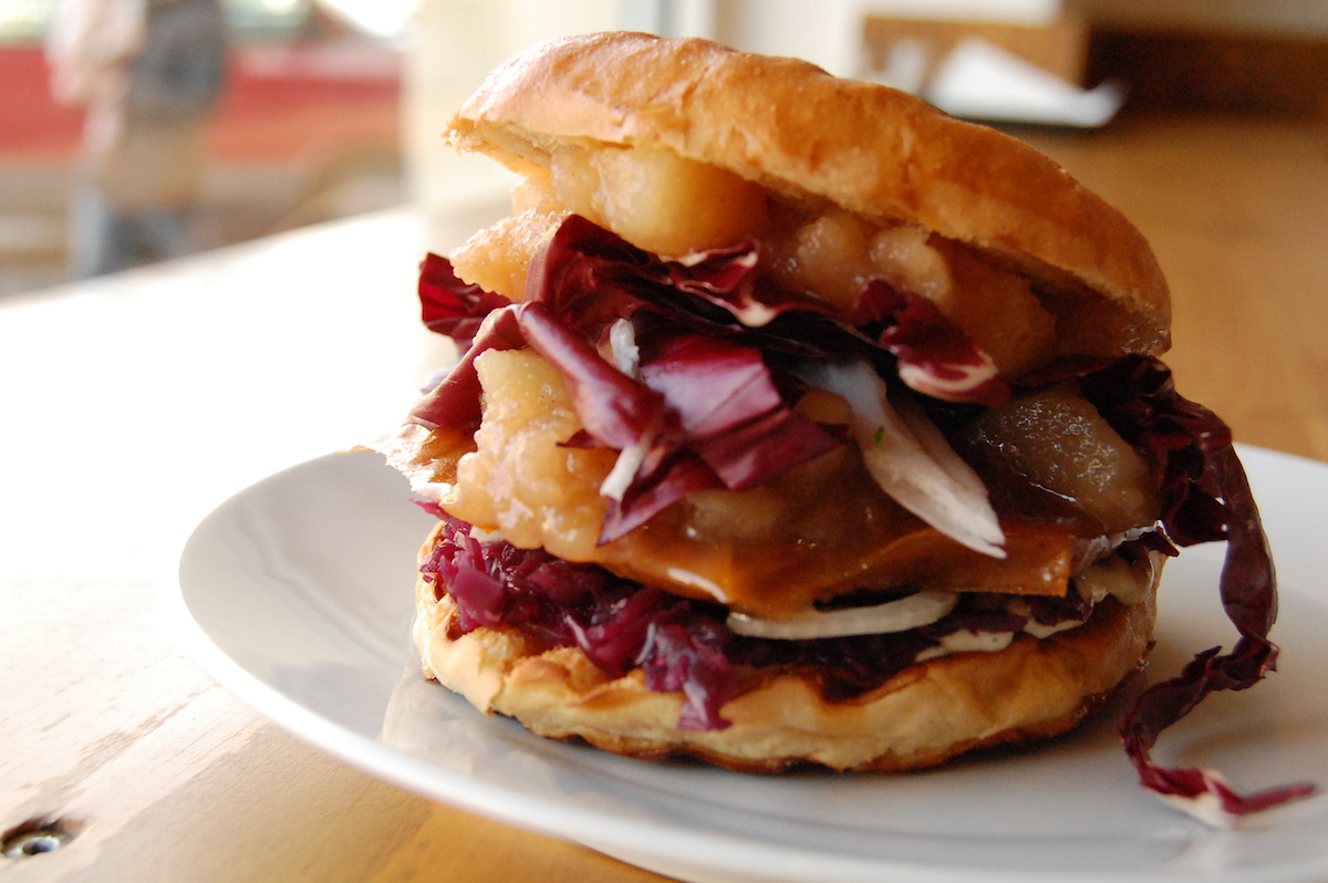 - Ein veganer Burger im l’herbivore