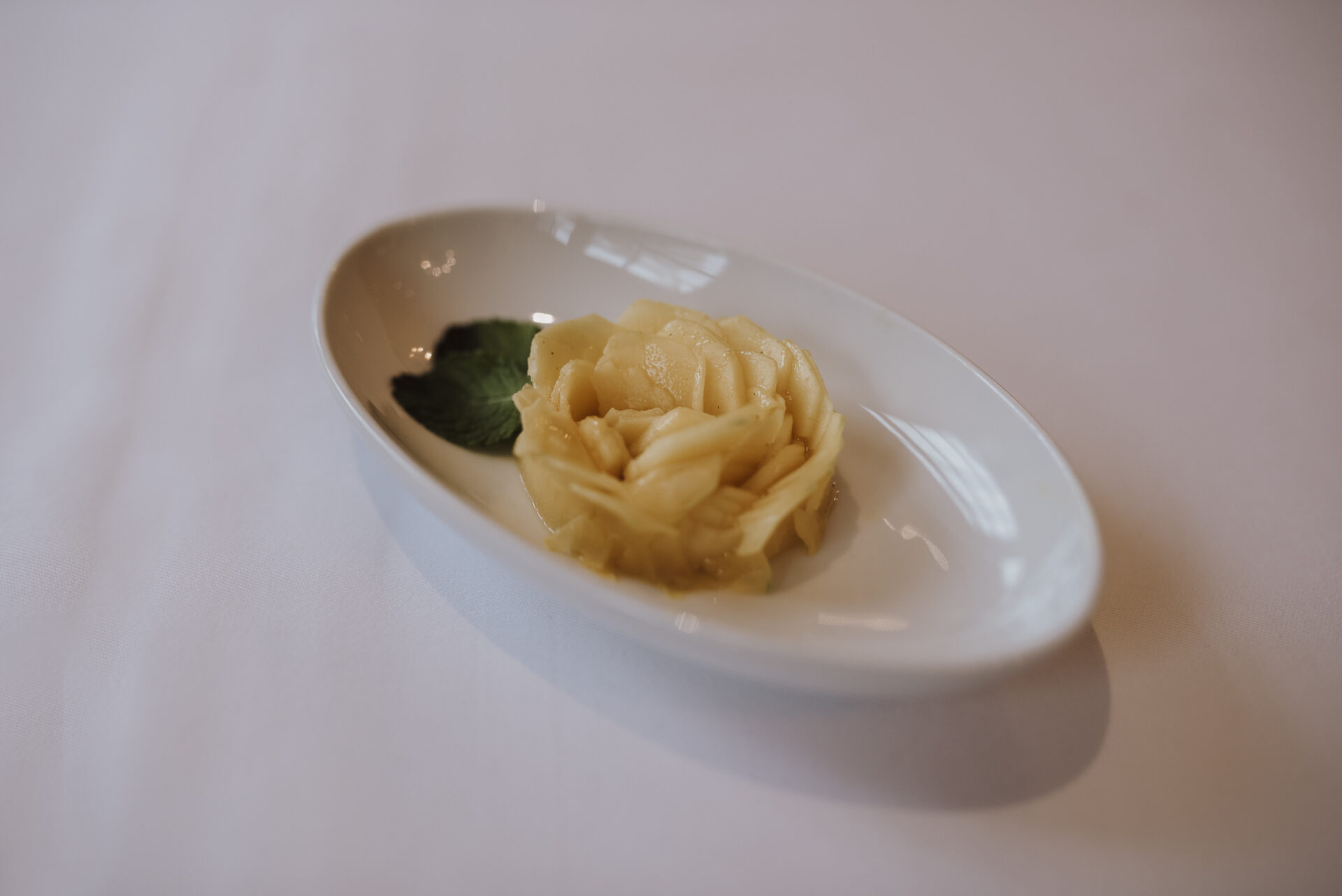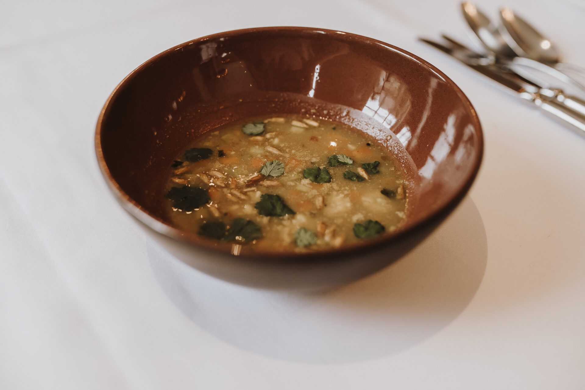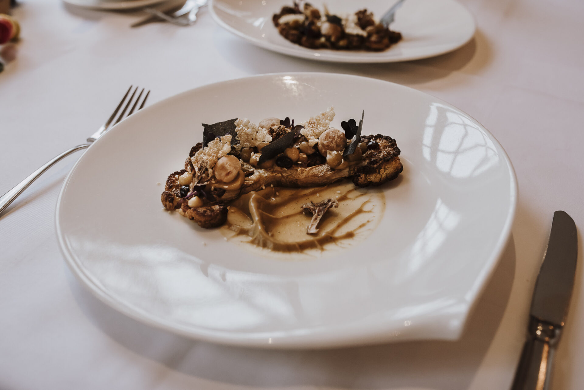Anschließend hatten wir nicht nur ein ayurvedisches Mittagessen, sondern ein „Fine Dining Ayurveda Cuisine“ persönlich vom Küchenchef und Kochkünstler Thomas Blümel gezaubert. Die Menüs entsprechen sowohl ayurvedischen Maßstäben als auch den höchsten Ansprüchen einer Fine-Dine-Küche. Ich denke, die Bilder sprechen für sich. Zu Beginn haben wir einen leckeren Agni Tee angeboten bekommen. Die Zutaten bestehen meistens aus Fenchel, Kümmel, Koriander, Zimt, Ingwer und Kardamom. Diese Mischung soll unsere Nahrung zu Energie verbrennen. Dann wurde ein Chutney serviert, aber nicht so wir man Chutney kennt. Es waren dünne Mango Scheiben kunstvoll in Form einer Rose geformt, dazu Minze, Orangen und Ahornsirup. Der war unheimlich lecker und der Küchenchef erklärte uns später, dass in der ayurvedischen Küche der Tee und die Vorspeise erst serviert werden, also genau anders als wie wir es gewohnt sind. Nach einer angenehmen Pause folgte eine typische Dahl Suppe verfeinert mit Sonnenblumenkernen und frischen Kräutern. Dann zwei wunderbare Hauptspeisen. Einmal eine unglaublich leckere Sellerie gegrillt, dazu gab es Püree mit Avocado, eingelegtem Kürbis vom letzten Jahr und dazu roter Karmark Reis. Die andere Speise war ein gegrillter Blumenkohl mit Macadamia Nüssen, dazu ein raffiniertes Teryaki Gel auf Basis von Agar Agar, dazu Püree mit Vanille, Ingwer Sojasauce, Chilli und Kichererbsen. Das war wirklich sensationell und sicher ein Erlebnis, an das wir uns noch lange erinnern werden. An dieser Stelle ein großes Dankeschön für diese kulinarische Reise. An dieser Stelle ein großes Dankeschön nochmal für diese kulinarische Reise.