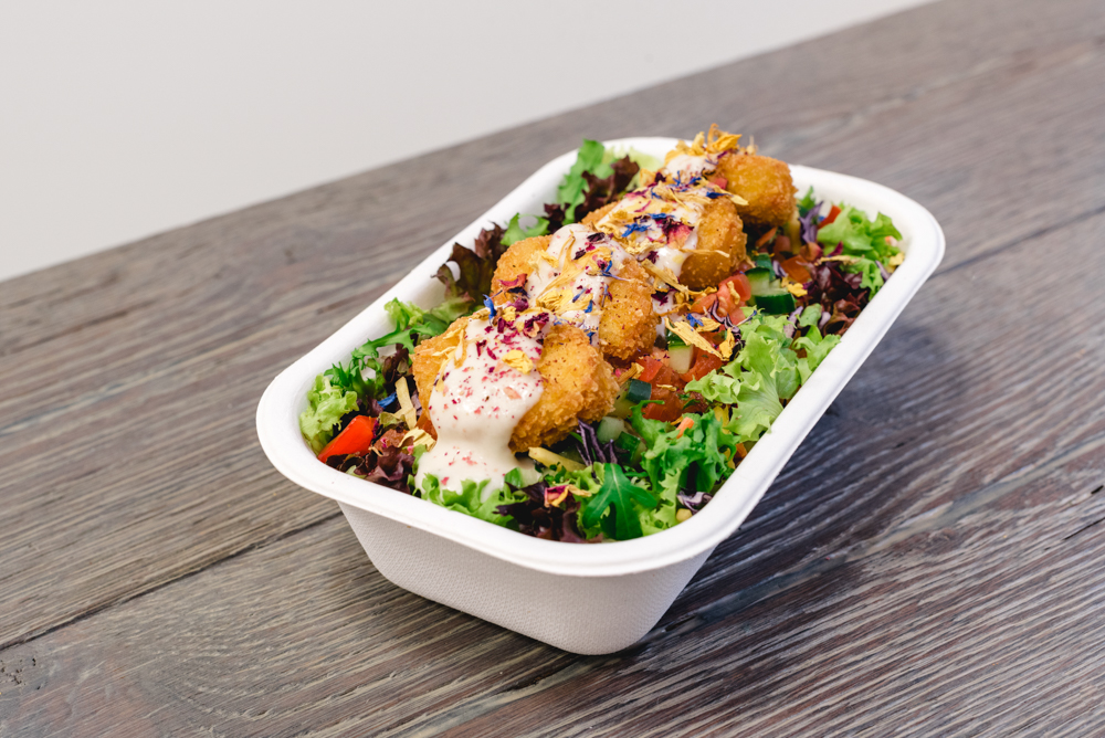 Eine gute Werbe-Phrase könnte man meinen? Aber nein, das Gründerpaar Irene und Charly Schillinger von Swing Kitchen lebt selber aus tiefer Überzeugung vegan. Sie schreiben sich Nachhaltigkeit, kurze Handelswege und eine faire Bezahlung ihrer Mitarbeiter/-innen ganz groß auf ihre Fahne. Beim Anblick des Geschirrs lässt sich an dieser Mission kurzzeitig zweifeln – denn es sieht aus wie stinknormales Einweg Plastikgeschirr. Ist das denn möglich? Keine Sorge, es ist kein Plastik!