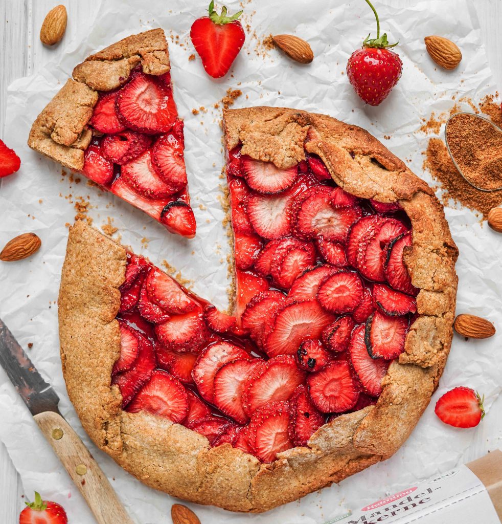 Im heutigen Rezept möchten wir dir zeigen, wie du eine köstliche Erdbeer-Galette zubereiten kannst. Dieses rustikale Dessert ist perfekt für den Sommer und wird euch mit seinem knusprigen Teig und der saftigen Füllung aus frischen Erdbeeren verführen. Mit gemahlenen Haferflocken, Mandeln, Dinkelmehl und Kokosöl im Teig erhält die Galette eine leichte nussige Note. Die Füllung aus Erdbeeren, Kokosblütenzucker, Speisestärke und Zitronensaft sorgt für den perfekten Ausgleich zwischen Süße und Säure. In nur wenigen Schritten kannst du diese duftende und vegane Galette zubereiten und deine Gäste damit begeistern. Lasst uns gleich anfangen und dieses fruchtige Dessert genießen!