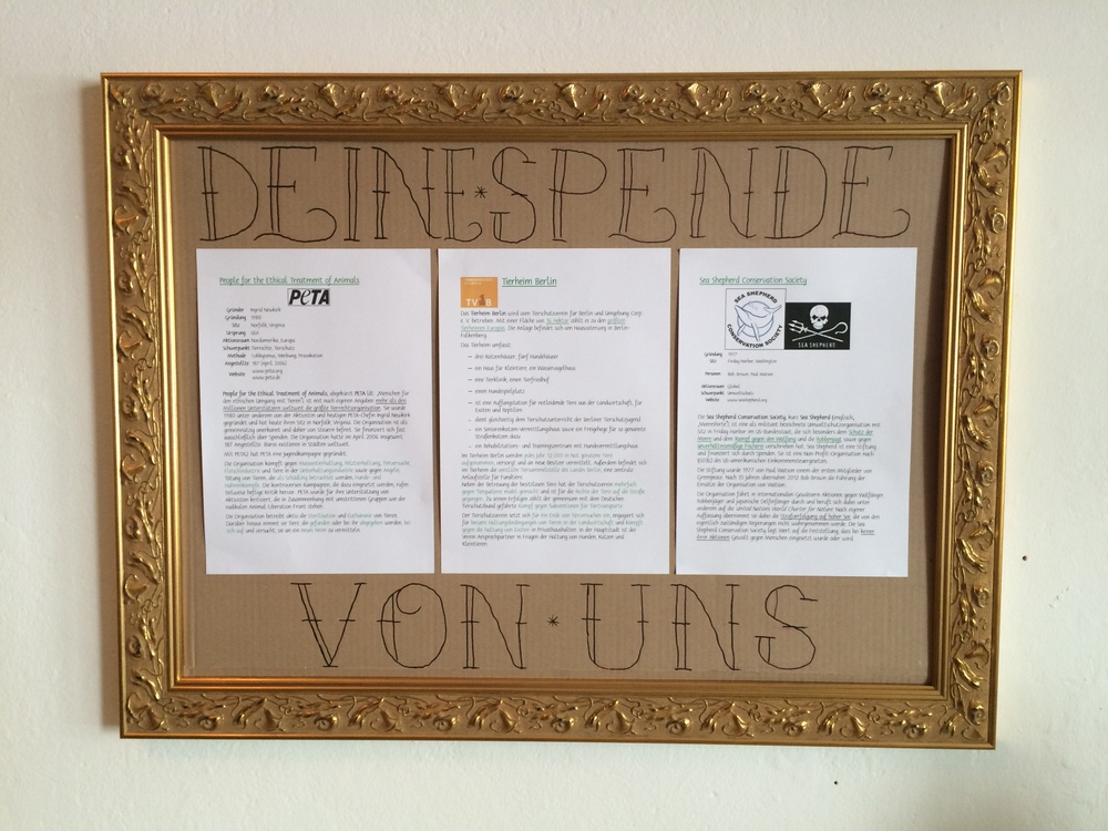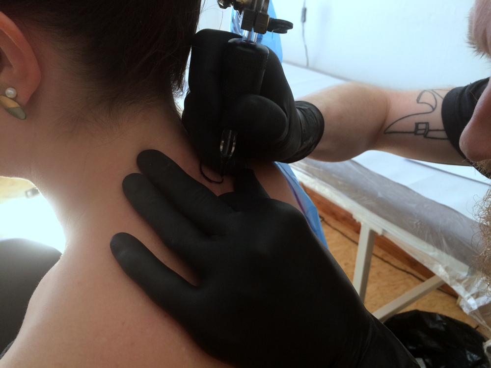 Ja, wir spenden 5 Euro pro Tattoo. Die 5 Euro tun uns nicht weh, und dabei kommt eine ganze Menge zusammen. Die Kunden dürfen dann entscheiden, welche Organisation sie unterstützen wollen, z.B. PETA oder das Tierheim Berlin. Wir haben sogar überlegt, in Zukunft immer mal wieder an einem Tag komplett für Spenden zu arbeiten. Es gibt einfach eine Menge Organisationen, die Spenden dringend nötig haben, und so können wir einen Teil beitragen.