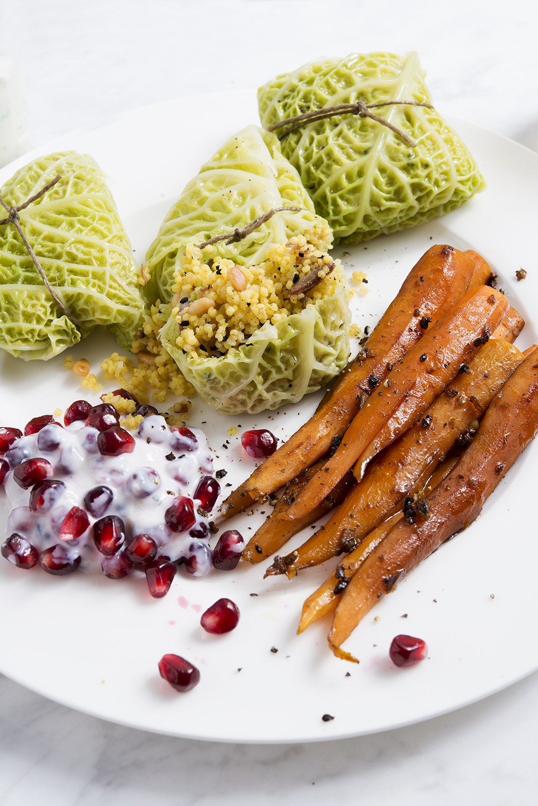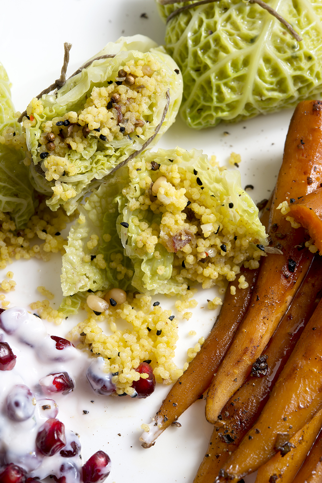 Wirsing-Hirse-Safranpäckchen an Ingwermöhren