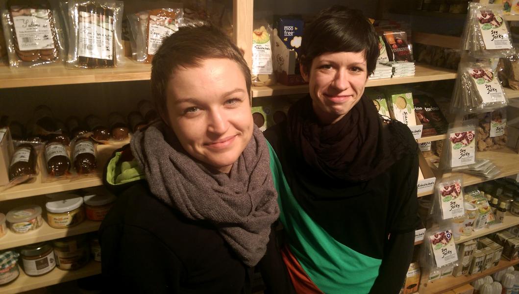 Das Team besteht aus Scarlett und Manja, die eigentlich beruflich was ganz anderes vorhatten. Aber es kam wie so oft: Da sie als Veganerinnen selber das Problem hatten, an bestimmte Produkte zu kommen, gründeten sie den Kokku Shop. Außerdem sind noch Dieter und Thomas mit an Board, sowie der Hund Oskar. Klingt nach einem sympathischen Team. Auf dem Foto unten seht ihr das Team ohne Männer und Hund.