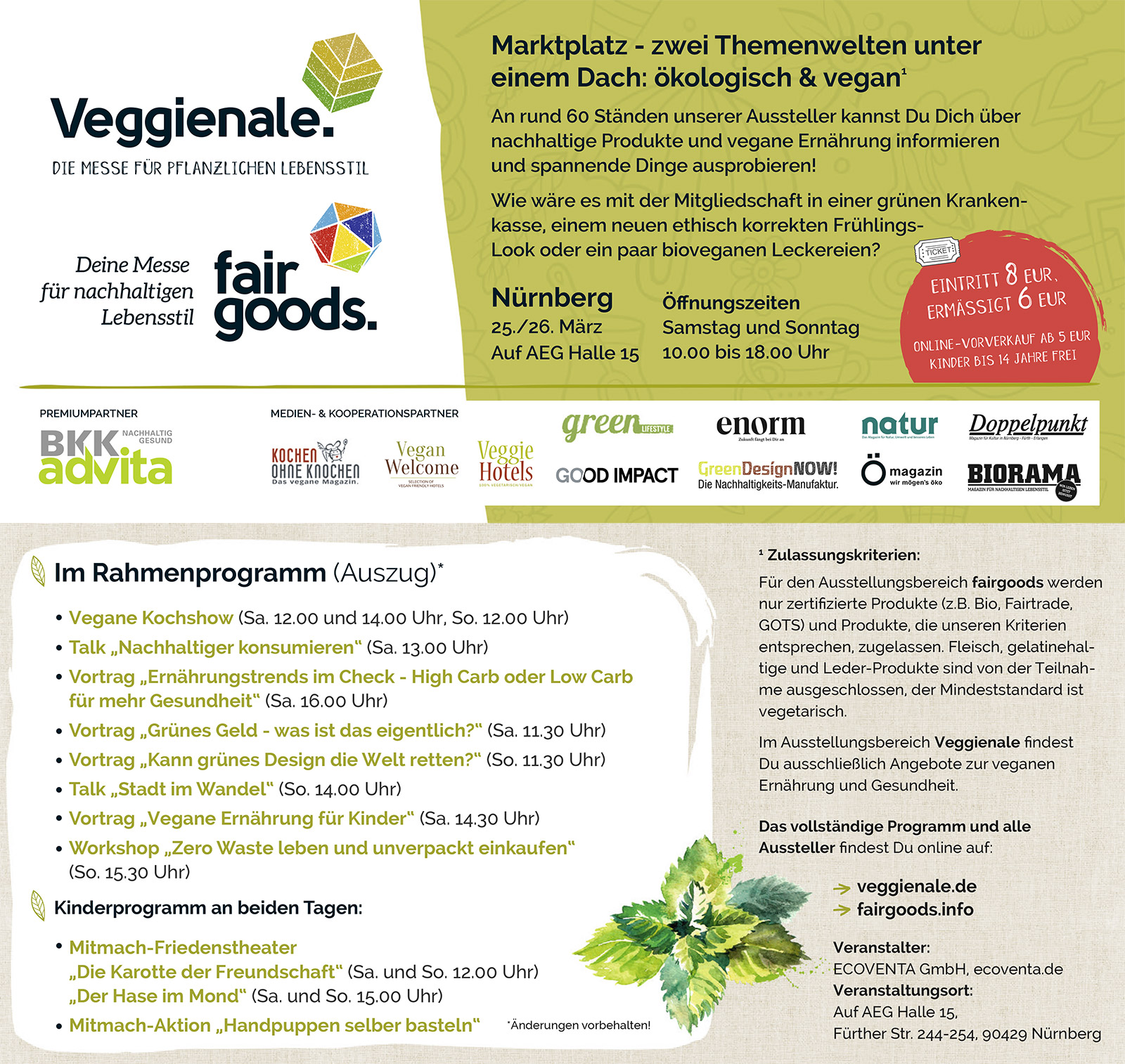 Du kannst aber auch der Veggienale nicht nur Produkte und Dienstleistungen entdecken. Es gibt nämlich zudem noch ein großartiges Rahmenprogramm, mit interessanten Vorträgen, coolen Kochshows, spannenden Talks und Workshops. Dabei findest du Themen wie