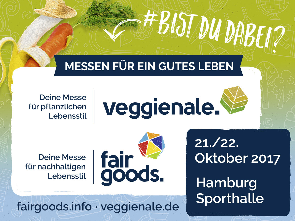 Die Veggienale wird übrigens in Kooperation mit der FairGoods Messe durchgeführt, d.h. dein Eintrittsticket gilt für beide Messen. Die FairGoods Messe ist aber keine vegane Messe, sondern hier ist der Mindeststandard vegetarisch. Fleisch, gelatineartige und Lederhaltige Produkte sind aber grundsätzlich ausgeschlossen.