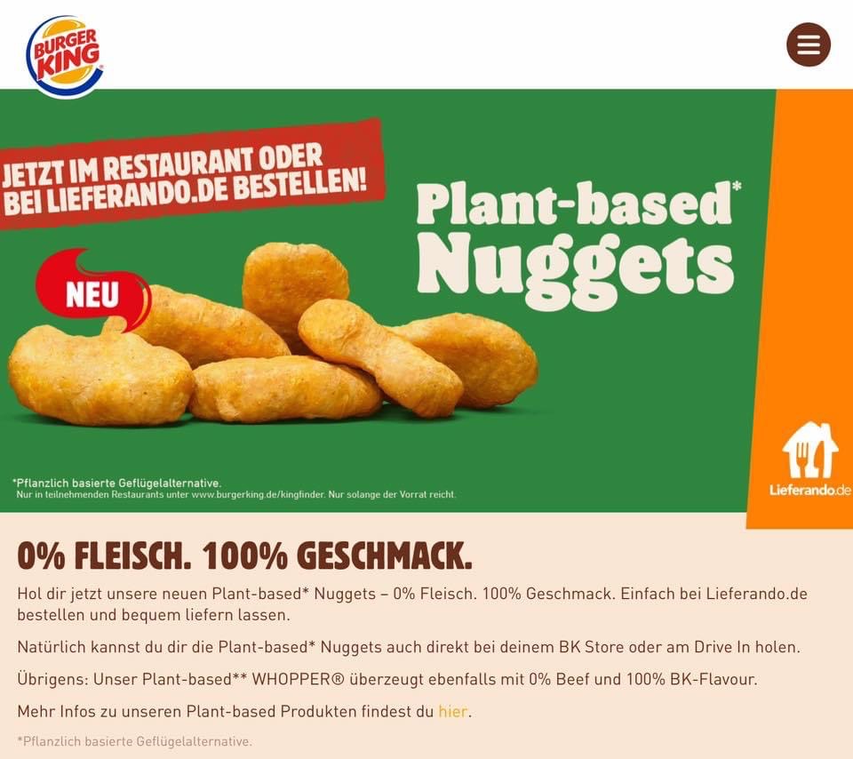 Die Nachfrage an veganen Fast Food Produkten steigt und nun macht auch Burger King deutlich, dass sie ihr Sortiment pflanzlicher gestalten möchten. Die neuen Plant-based Nuggets sind komplett pflanzlich und in teilnehmenden Burger King Filialen erhältlich. Die pflanzliche Neuheit sorgte für viel Aufruhe in der veganen Szene, da die Nuggets an sich zwar vegan sind, sie aber leider im selben Fett wie die Fleischnuggets frittiert werden. Dies stößt einigen Veganer übel auf und sie möchten das Produkt nicht kaufen, da es in dem Fall leider mit etwas Tierischem in Kontakt kam. Die Nuggets stammen vom Vegetarian Butcher und sind auch so im Einzelhandel zu kaufen. Diese kannst du dann zu Hause selber frittieren oder braten und sie guten Gewissens genießen. Dennoch zeigt Burger King mit seinen pflanzlichen Nuggets, dass fleischlose Alternativen immer beliebter werden. Vielleicht greift ja auch ein Fleischesser mal zu der pflanzlichen Alternative und merkt dadurch, wie lecker und einfach vegan essen geht. So oder so ist es auf jeden Fall ein Schritt in die richtige Richtung, auch wenn nicht jeder Veganer die Plant-based Nuggets kaufen möchte.