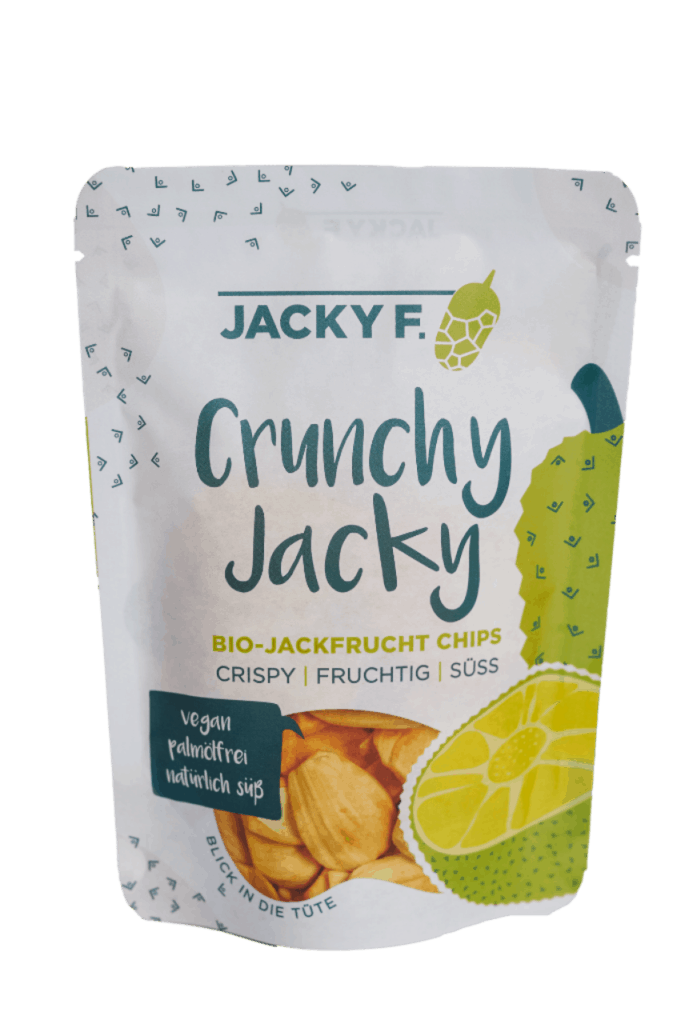 Es gibt Neues vom sozialen Food-Start-up JACKY F.! Dass die Jackfruit ein leckerer Fleischersatz ist, wissen wir bereits. Nun setzt JACKY F. auf die beliebte Frucht als Snack. Dafür werden die reifen Bio-Jackfruits verwendet, weshalb sie ein exotischeres Aroma hat, als die jung geernteten Früchte. Die Snacks schmecken super fruchtig und erinnern manchmal sogar an Gummibärchen. Die leckeren Snacks gibt es in zwei Varianten: Exotisch knusprig und sanft getrocknet. Wie von JACKY F. gewohnt sind die Zutatenlisten kurz und überzeugen mit Natürlichkeit. Selbstverständlich sind die Produkte frei von Zuckerzusätzen, Palmöl, Konservierungsstoffen und tierischen Erzeugnissen.