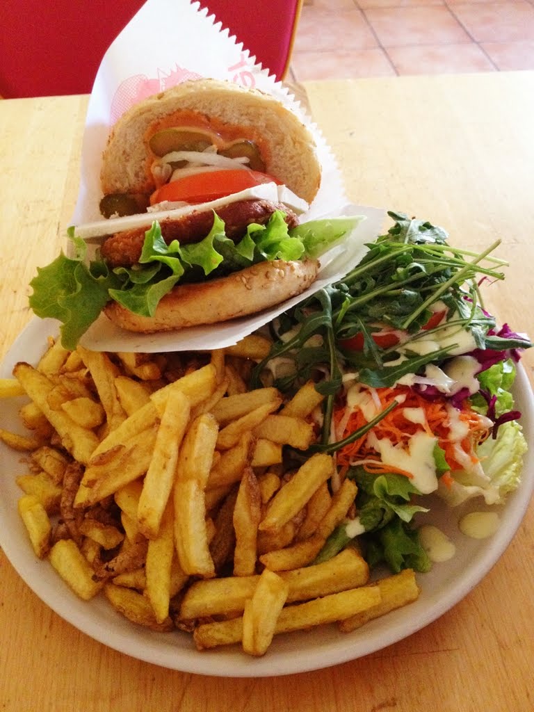 Vor kurzem erst hatte ich über die Vleischerei in Leipzig berichtet, und heute stelle ich euch schon wieder eine vegane Fast Food-Lokalität vor: Das Yoyo Foodworld in Friedrichshain. Hier gibt es 100% veganes (am Anfang gab es auch „nur“ vegetarisches, inzwischen ist alles vegan) Fast Food, so ziemlich alles in Bio-Qualität. In erster Linie sind dies Burger, hinzu kommen Wraps, ein veganer Döner, diverse Snacks, Salate, vegane Pizza und einiges mehr. Das Angebot ist wirklich sehr groß.